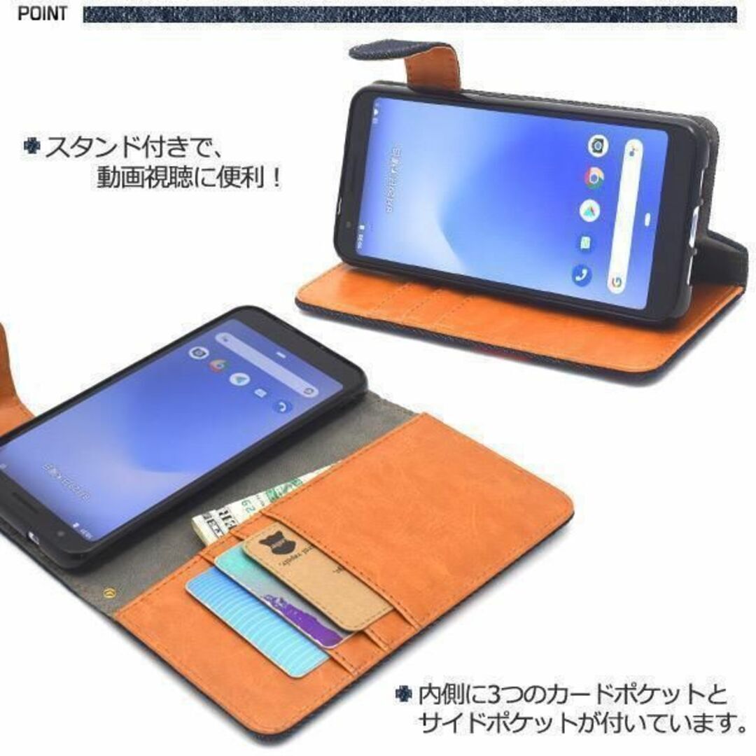 デニムデザインの手帳型ケース。