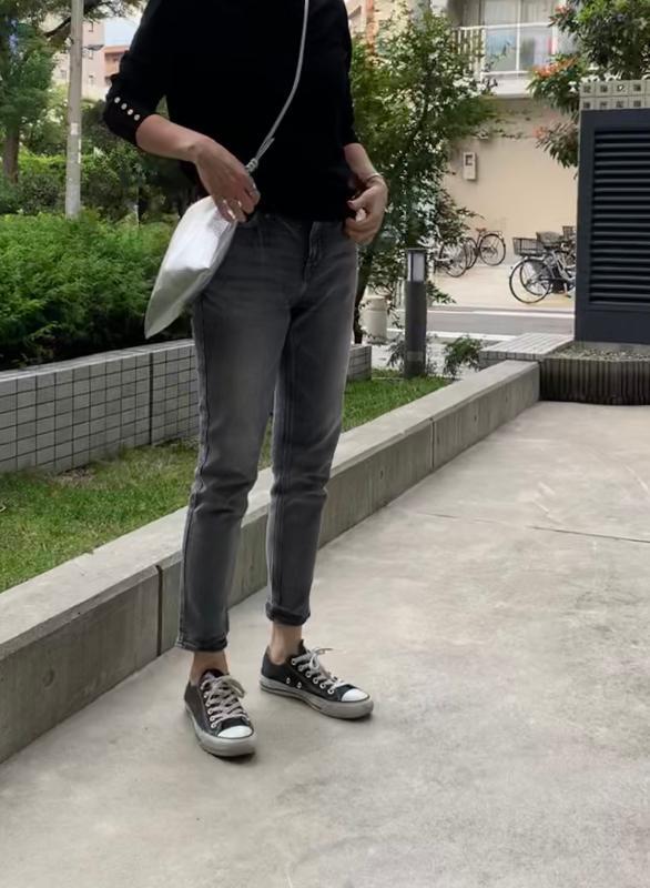 ニュアンス感のあるグレーの色味で、トップスのカラーを選ばない合わせやすいお色味です。。
