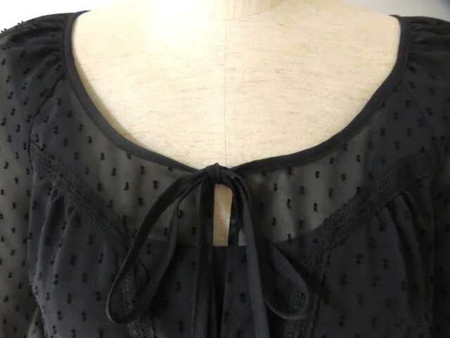 ■上質美品【 NOLLEY'S 】ノーリーズ 高級 シフォン ブラウス 刺繍シフォン 黒 送料185円 w1753