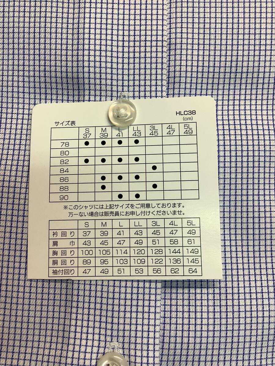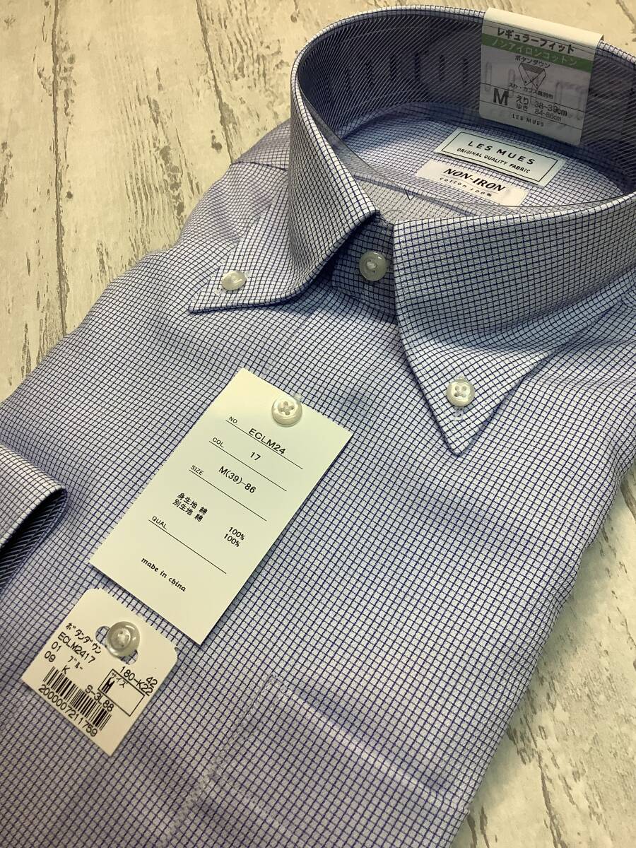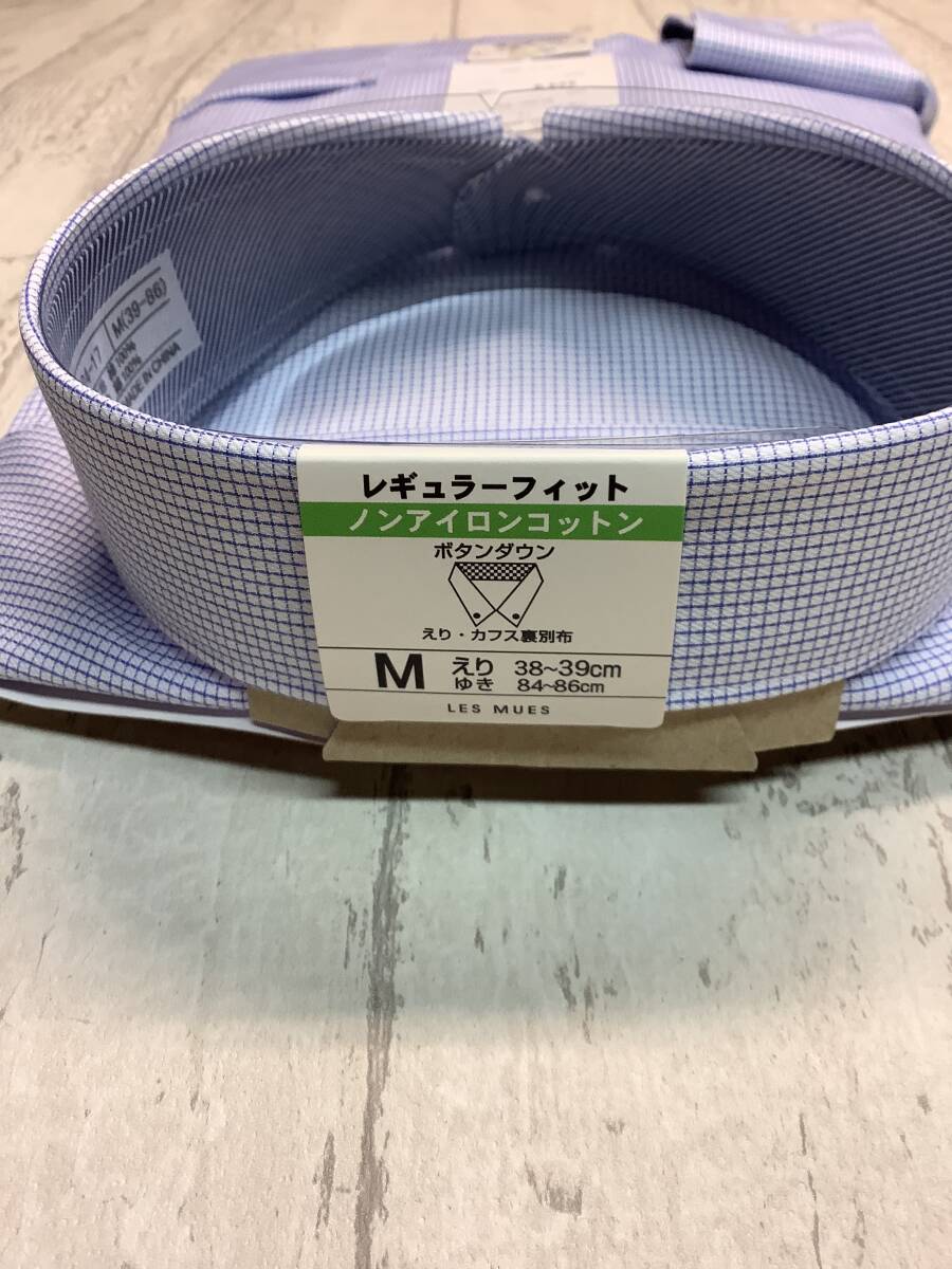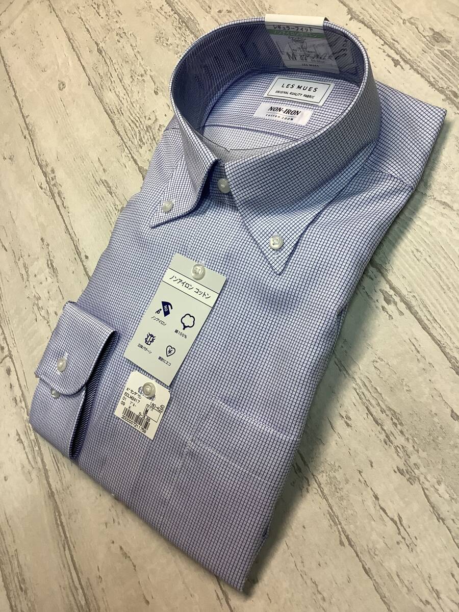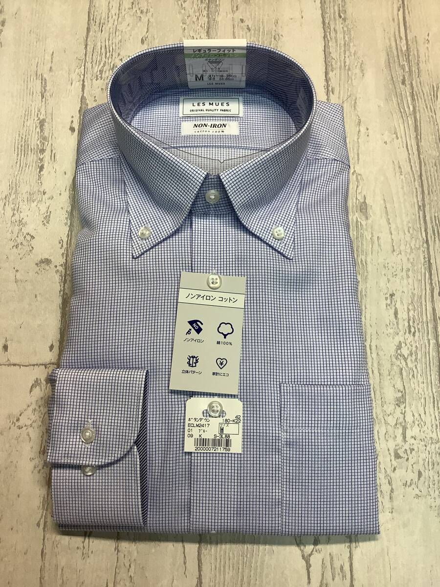 新品 39-86長袖Mサイズ ★ボタンダウン★ドレスシャツ ノンアイロン綿100%☆ブルー系 チェック柄