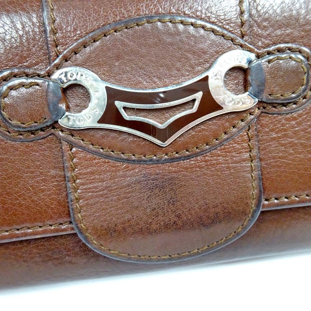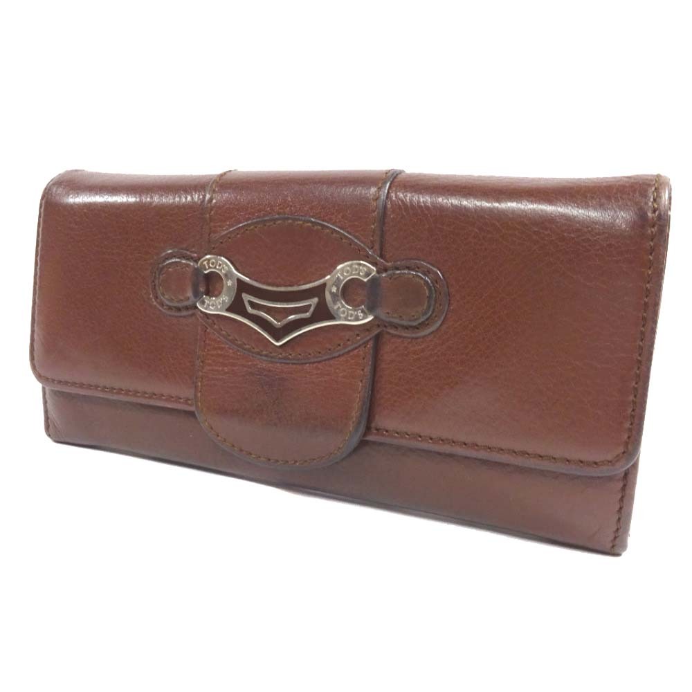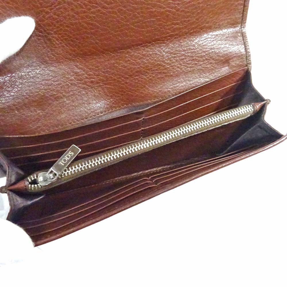 トッズ ロゴ金具 二つ折り 長財布 ユニセックス レザー ブラウン 中古 TOD’S