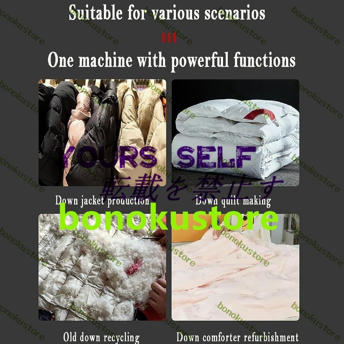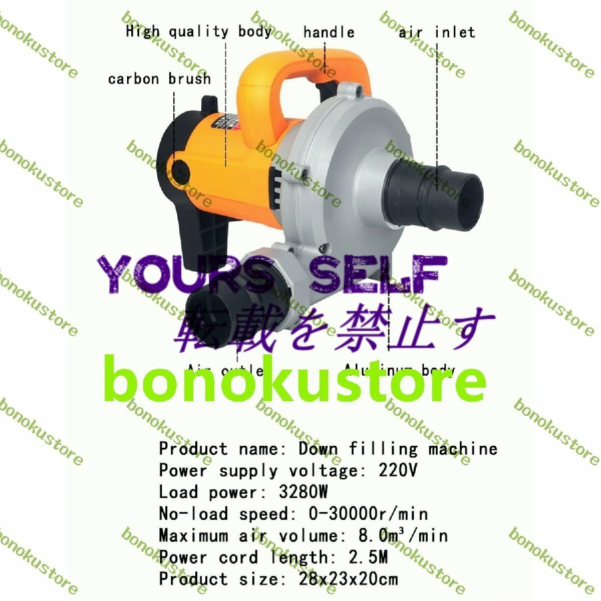 製品名: ダウン充填機 電源電圧:220V 負荷電力: 3280W 無負荷速度: 0-30000r/min 最大風量:8.0m3/min 電源コードの長さ: 2.5M 製品サイズ: 28x23x20cm パック: 1xダウン充填機 3x 拡張丸チューブ 1x フットスイッチ 1x ダストバッグ 1x1Mホース 1x2Mホース