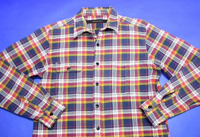 「 SHIPS GENERAL SUPPLY(シップス ジェネラルサプライ)」の Heavy Weight Flannel Work Shirts ヘビーウエイト フランネルシャツ L/S CHECK 長袖 チェック インドコットン LARGE L COTTON MADE IN INDIA マルチカラー ストリート アメカジ Surf サーフ カジュアル