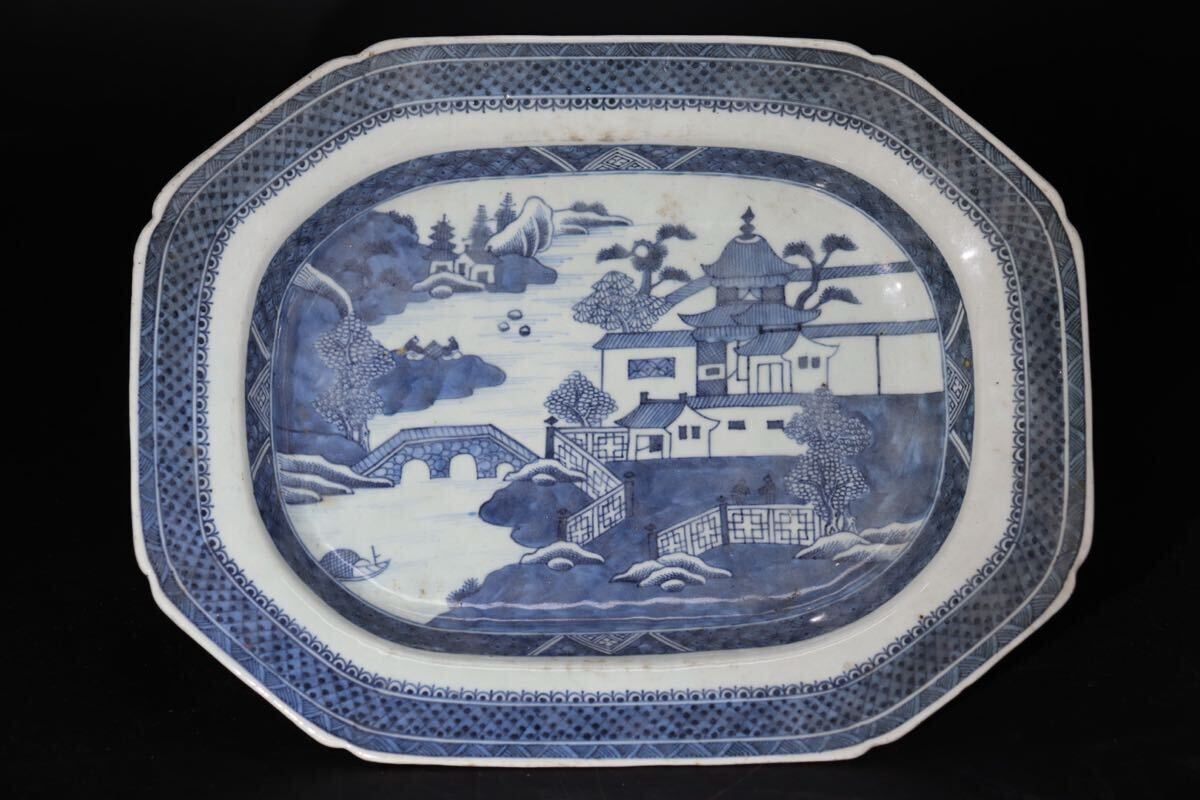 | 時代 古染付 風景図 皿 / 明代 頃 中国美術 茶器 煎茶道具 煎茶飾 飾皿 .G1732 |
