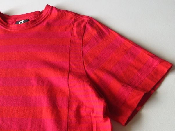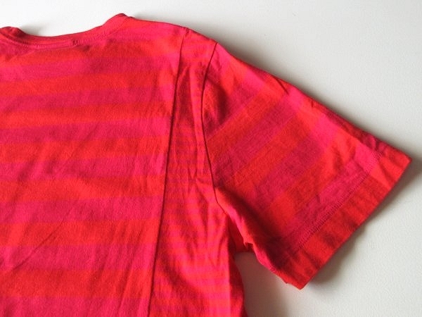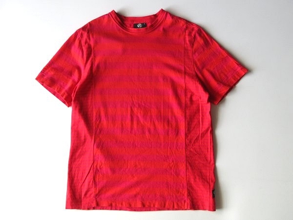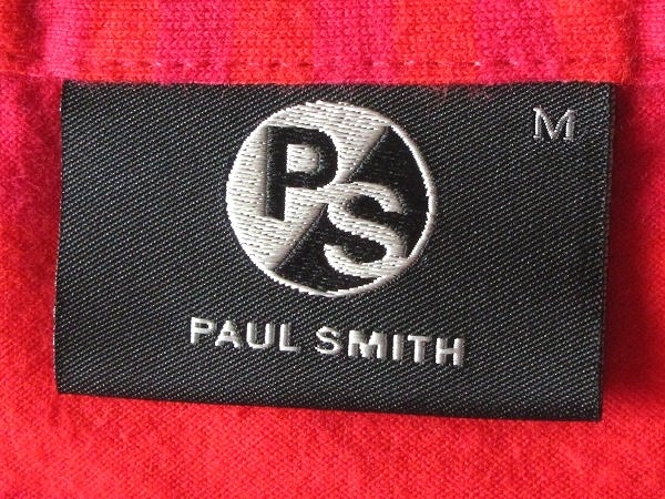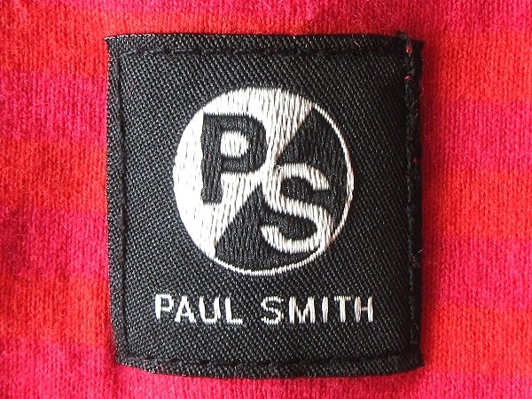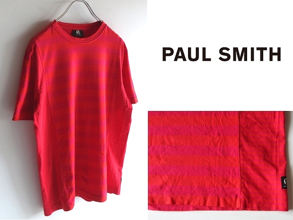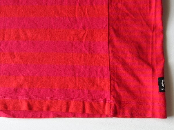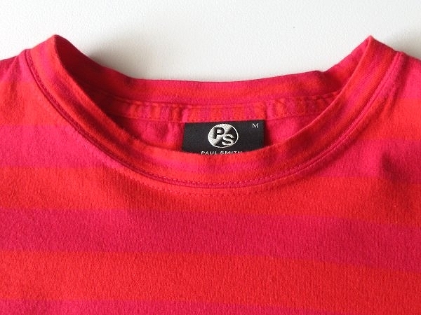ネコポス対応 PS Paul Smith ポールスミス ロゴワッペン コットン ボーダー切替 Tシャツ 半袖 カットソー M ピンクレッド オレンジ