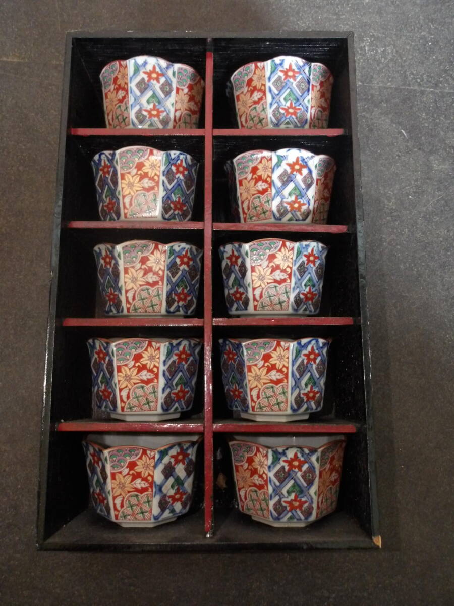 | 【4159】当時物 室内保管 木箱付き 有田焼 古伊万里文様小鉢 10個セット 日本陶器 陶磁器 工芸品 陶器 和製 レトロ アンティーク | |