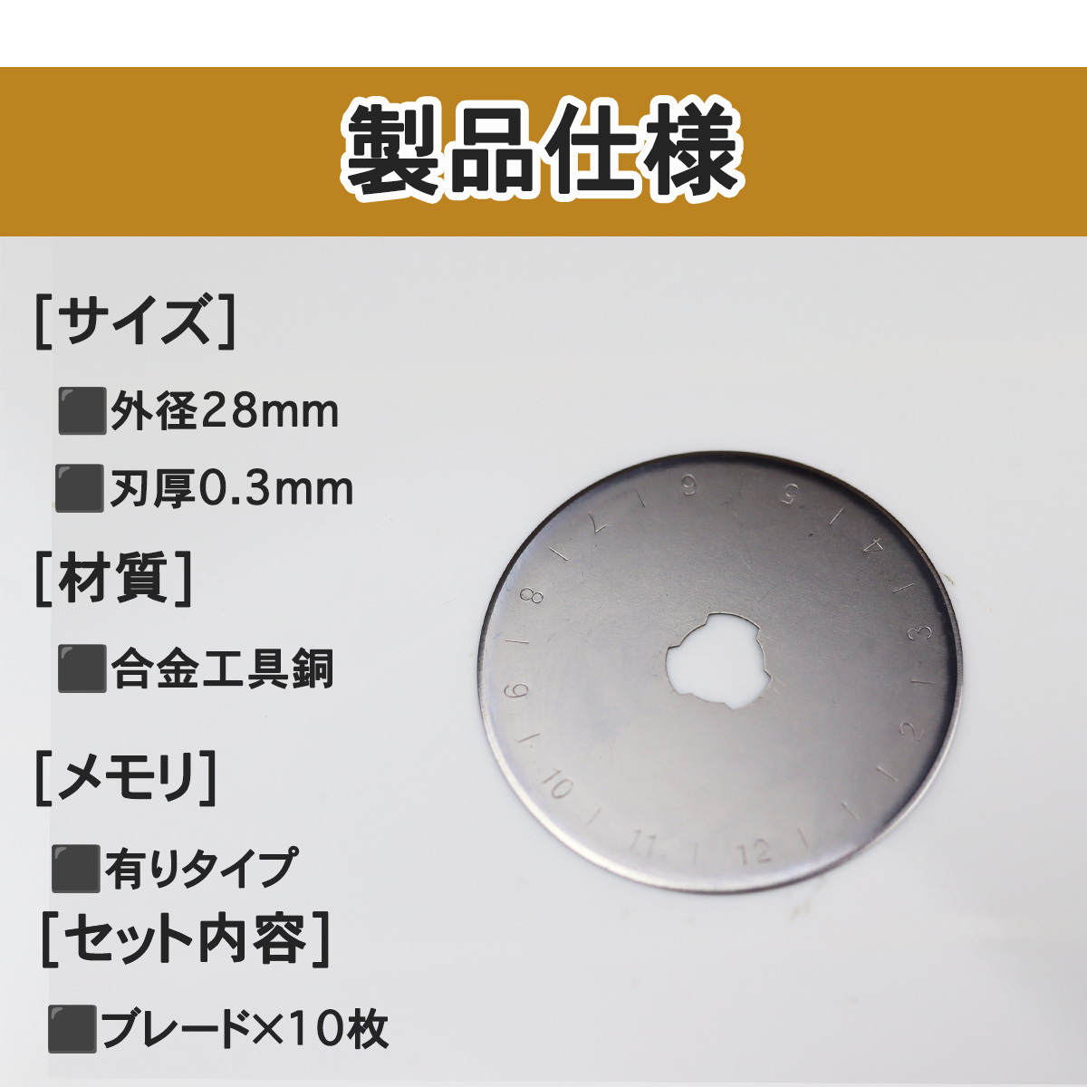 替え刃 28mm 10枚 メモリ付 ロータリーカッター 円型刃 替刃 丸刃 カッター 切断用品 裁断 手芸用品 裁縫 レザー 布 ペーパー DIY 送料無料