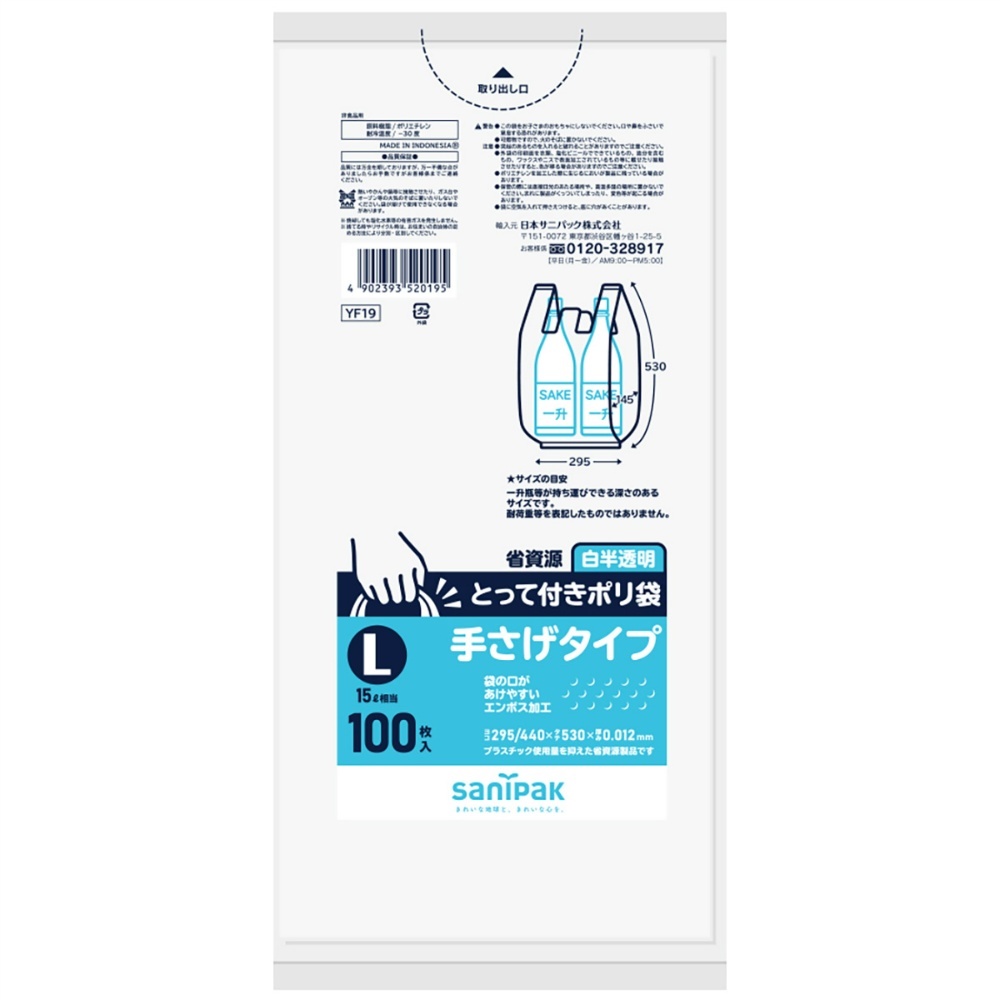 YF19とって付きポリ袋エンポス白半透明Lサイズ100枚0.012mm