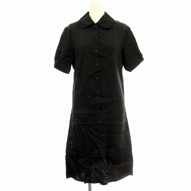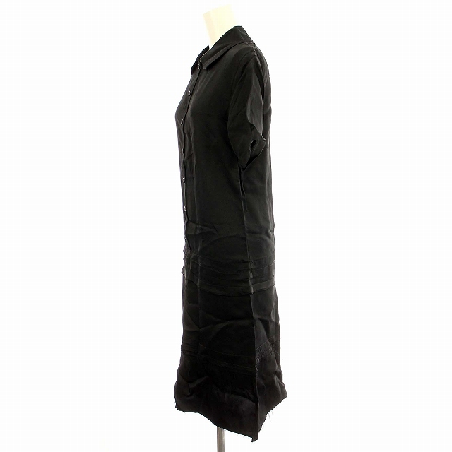 セリーヌ CELINE フィービー期 シャツワンピース 半袖 サテン カットオフ 34 黒 ブラック /☆G ■MT ■GY19 レディース
