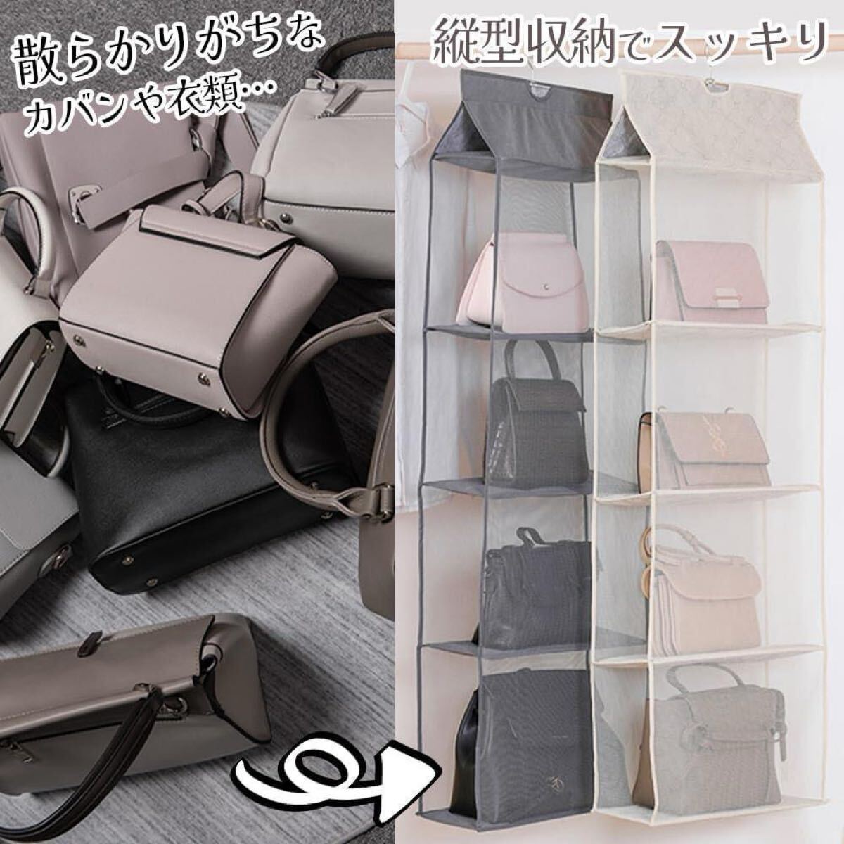 ideamall 吊り下げ収納 折りたたみ バッグ収納ラック カバン収納 バッグ ハンガー クローゼット 収納 バッグハンガー 型崩れ防止 省スペース 防湿 防カビ すっきり収納 インテリア雑貨 片付け 整理 整頓 (4段式, グレー)