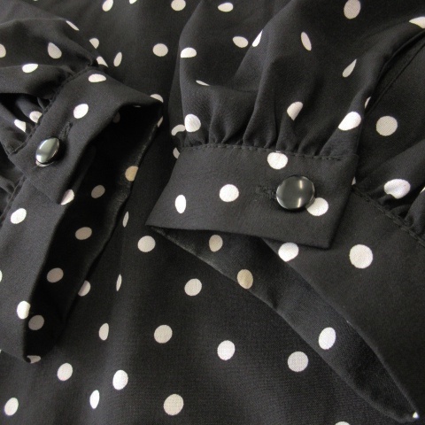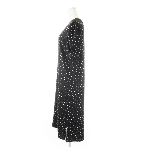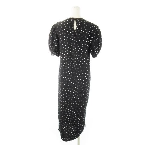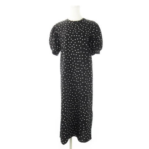 グレイル GRL ワンピース ロング クルーネック 半袖 Iライン スリット ドット S 黒 ブラック /CK17 レディース