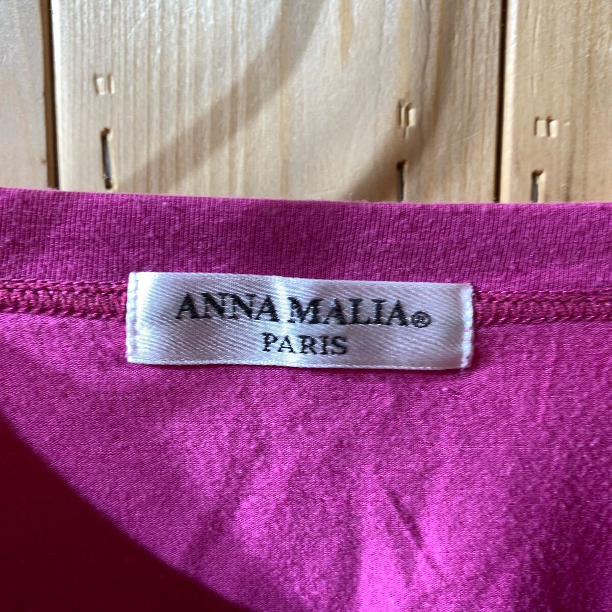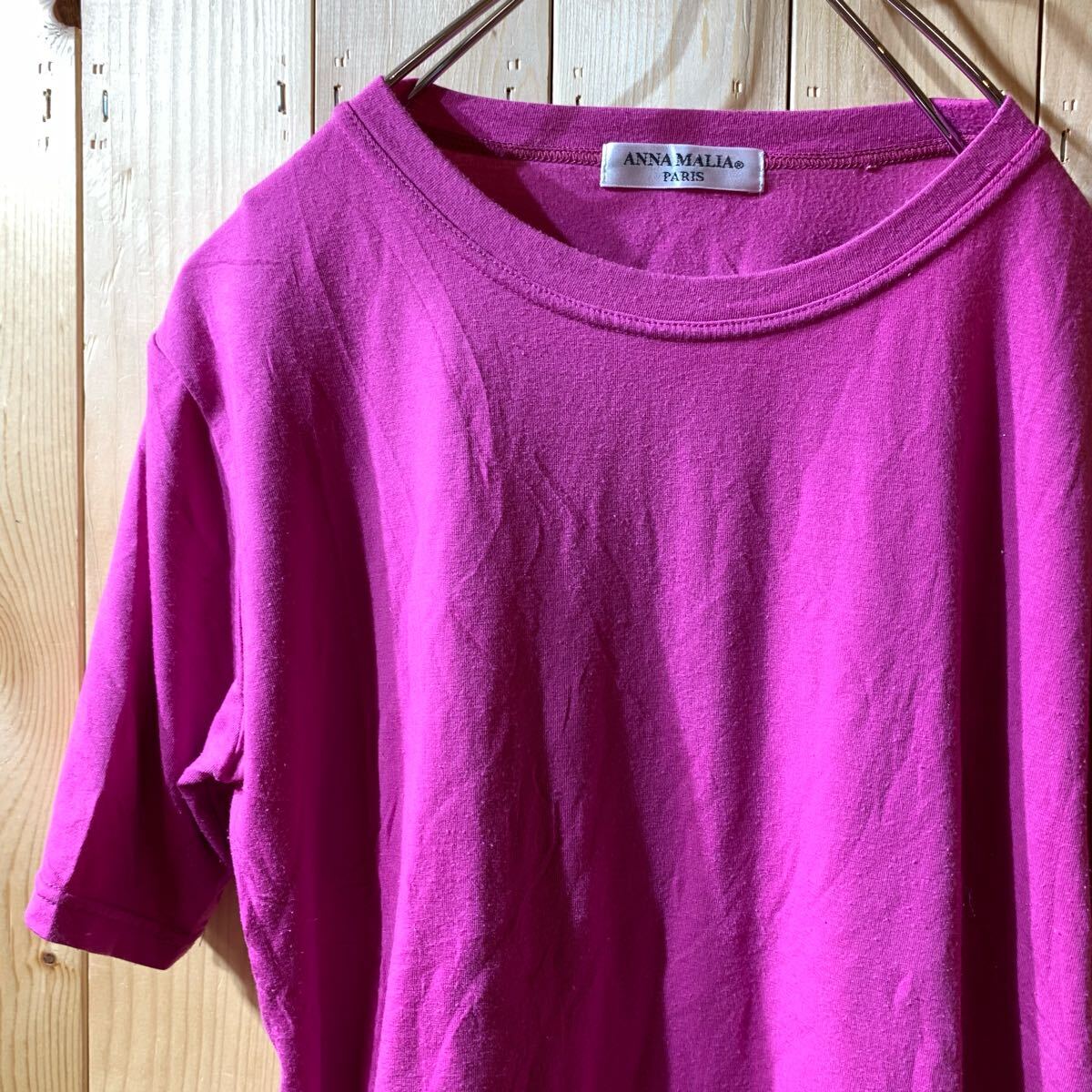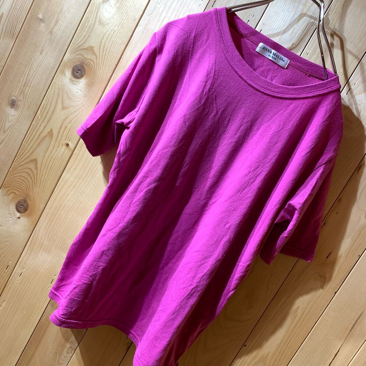 [YUK413]ANNA MALIA 半袖 Tシャツ カットソー プルオーバー 無地 紫 パープル M