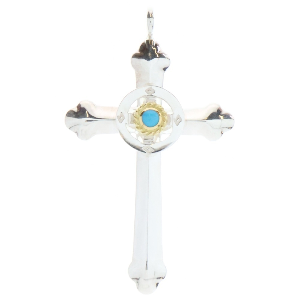 品名金縄ターコイズホイール付きクロス ペンダントトップ シルバー/ゴールド