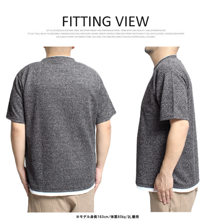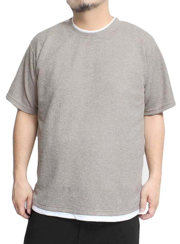 | 商品名 | 【新品】 4L グレージュ×半袖 半袖 Tシャツ メンズ 大きいサイズ メランジ パイル フェイクレイヤード 消臭 抗菌 クルーネック 半袖 カットソー |