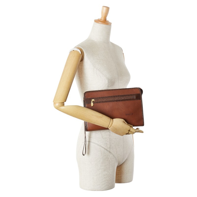 バリー ロゴ クラッチバッグ ブラウン レザー レディース BALLY 【中古】