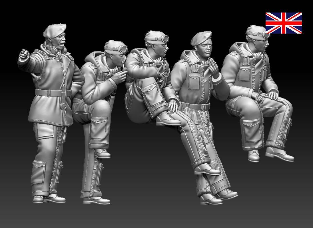 HINODE 1/144 レジンキット 未塗装WW2 イギリス軍戦車兵士フィギュア5体VOL.3ワールドタンクミュージアム 240517