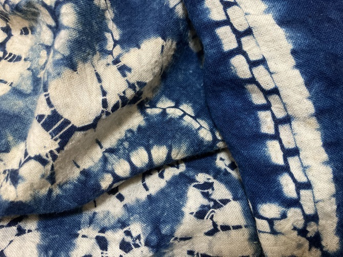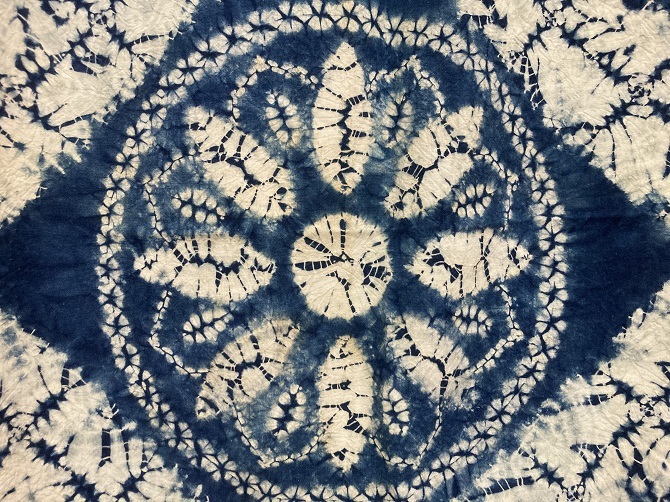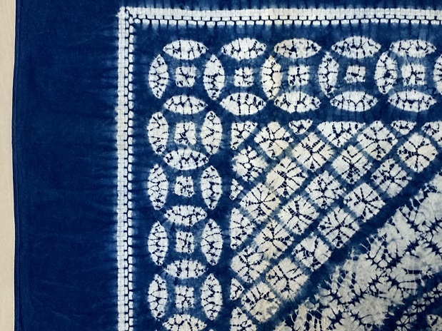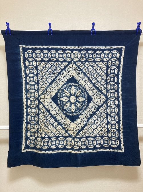72.アンティーク木綿◇中古◇ 絞りの風呂敷、テーブルクロス 暖簾 壁飾り 古民家 古布リメイク・・・◆約112×112センチ