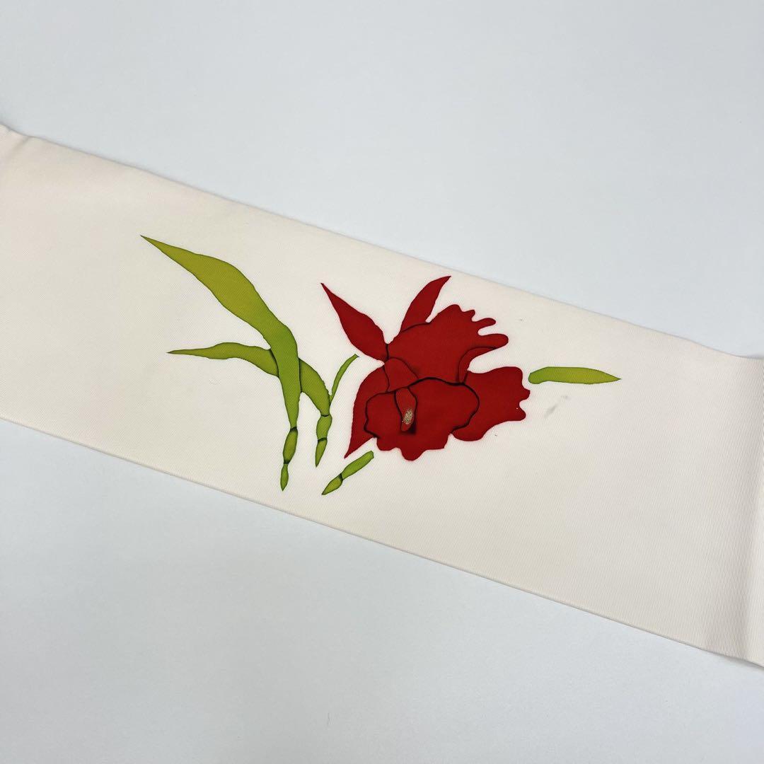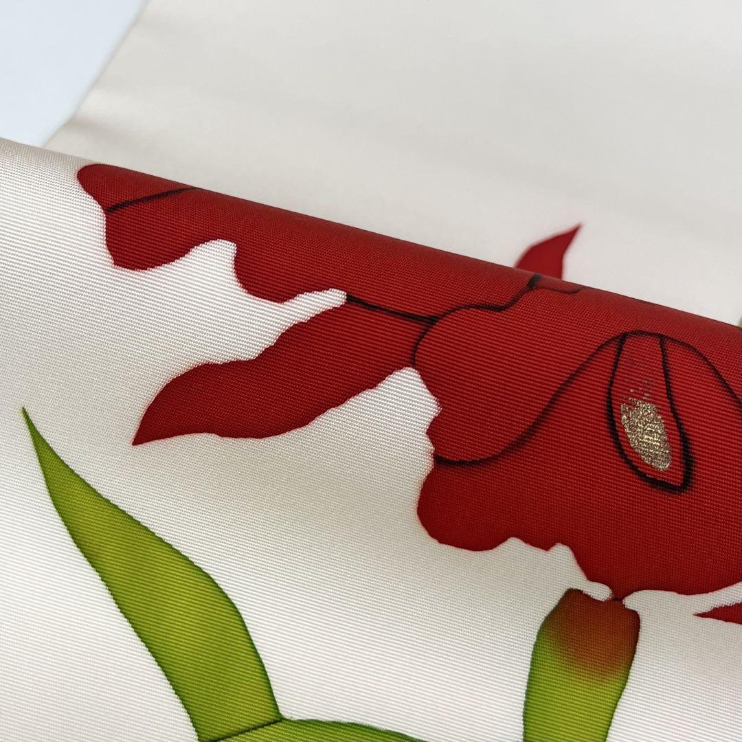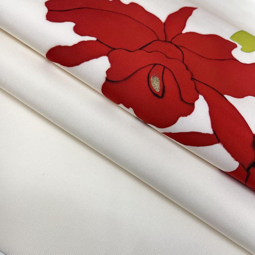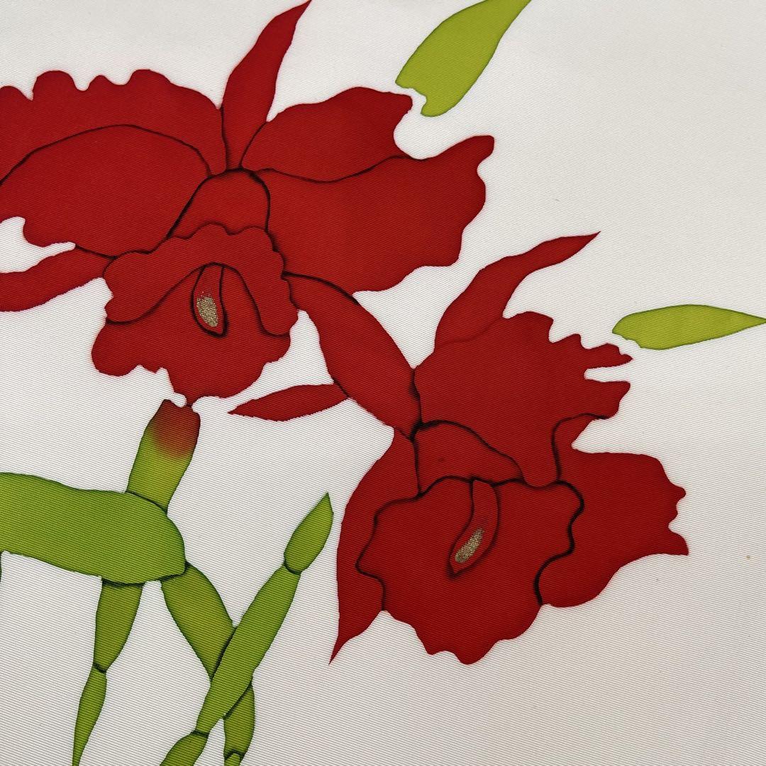 真っ白な地にくっきりと映えるカトレアのような花模様。