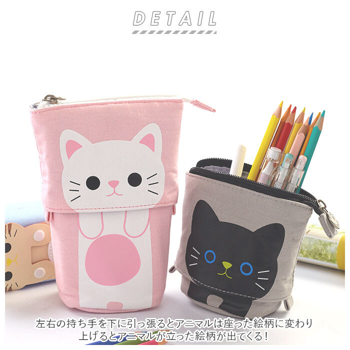 | 商品説明 | ・・アニマルが立ったり座ったり可愛い☆立てて使えるペンケース。 ・左右の持ち手を下に引っ張るとアニマルは座った絵柄に変わり、上げるとアニマルが立った絵柄が出てくる! ・デスクの上で自立するので邪魔にならず、アニマルの頭を下げれば何が入っているか一目瞭然。 ・中には定規やペンを1~2本入れるのに便利なサイドポケットX3を装備。 ・見た目以上にたっぷり収納。かばんの中や出先でスマートに持ち運び。 ・ペンケースとしてだけでなく、コスメポーチとしても◎ |