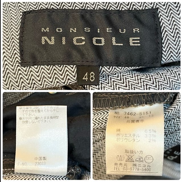 P メンズ パンツ MONSIEUR NICOLE CLUB ムッシュ ニコル クラブ ブラウン ストライプ ヘリンボーン FF463 / 約W33 全国レターパック配送