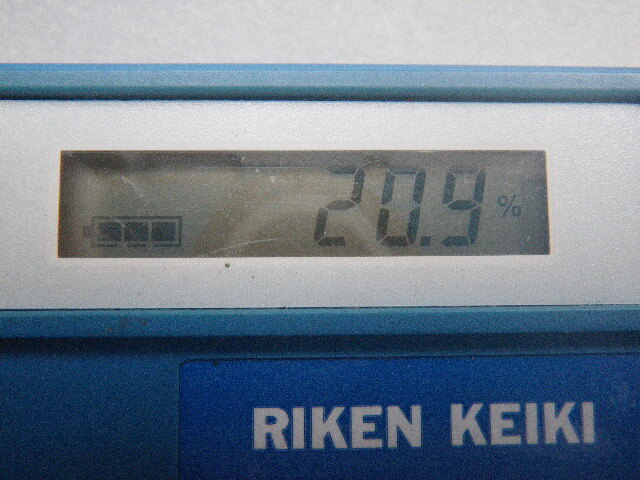 リケン 酸素モニター OX-95 多少スレ.汚れ.小傷等有る普通中古品です。通電後20.9%を表示して呼吸排気(17.8%)で