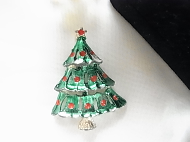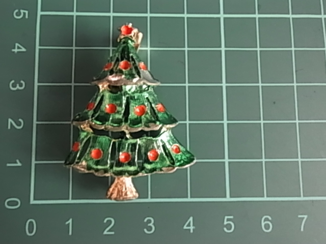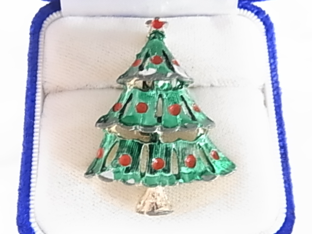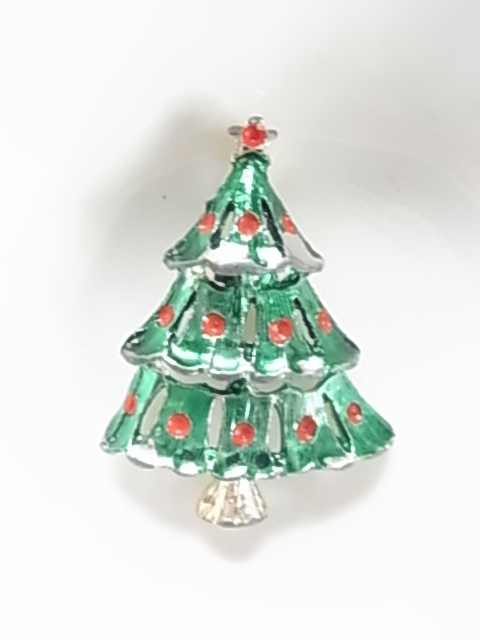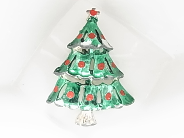 □ビンテージ/ヴィンテージ クリスマスツリーのデザイン Xmas tree 緑色と赤色が可愛い レトロの素敵なブローチ
