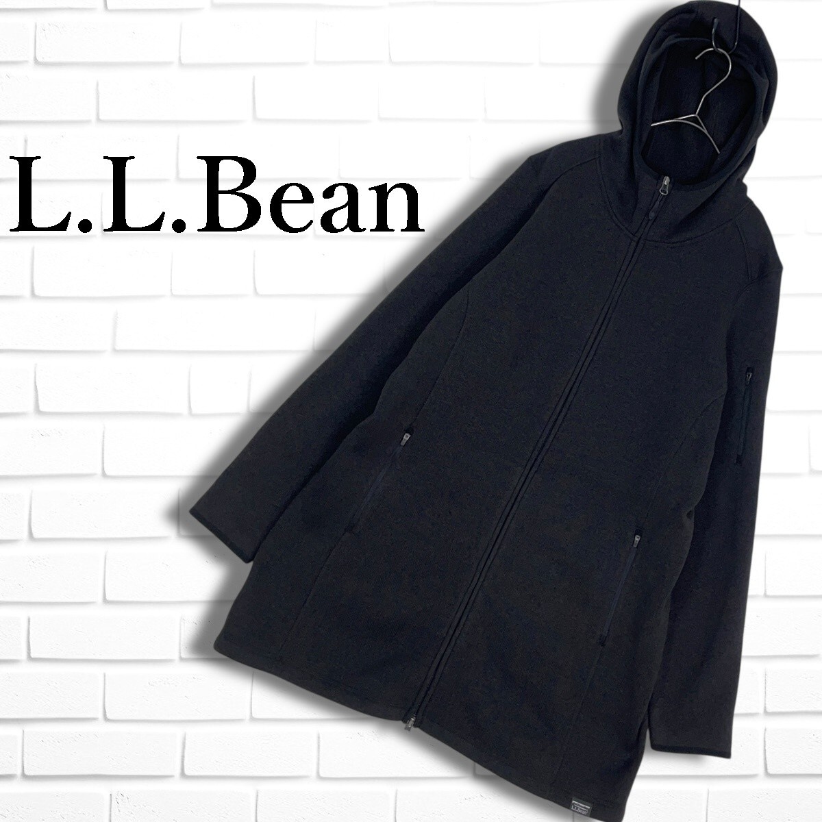 ◆美品◆ L.L.Bean エルエルビーン ゆったり♪ 裏起毛 ニット ロング パーカー 黒 グレー レディース L ◆送料無料◆ 2315F◇