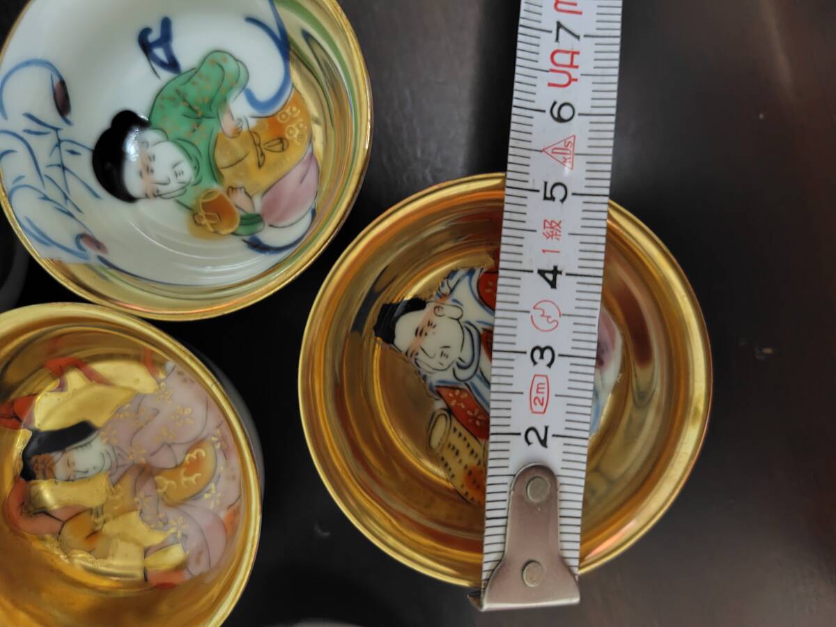 九谷焼 七福神 盃 色絵 金彩 お猪口 ぐいみ 酒器 陶器 工芸品 骨董 美術品 縁起物 お祝い 迎春準備 料亭 割烹 お正月