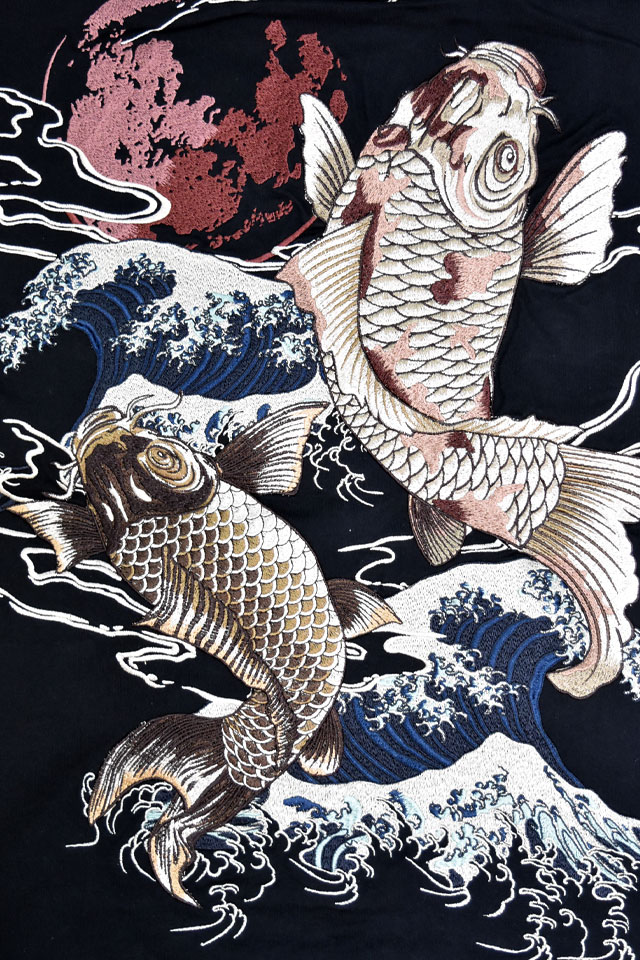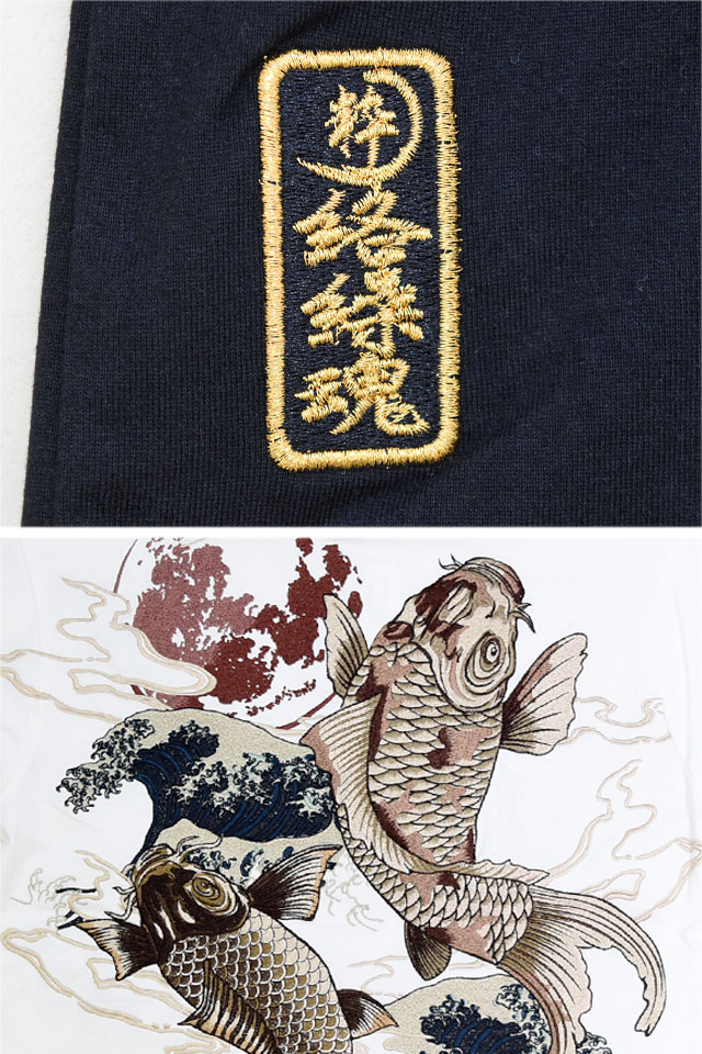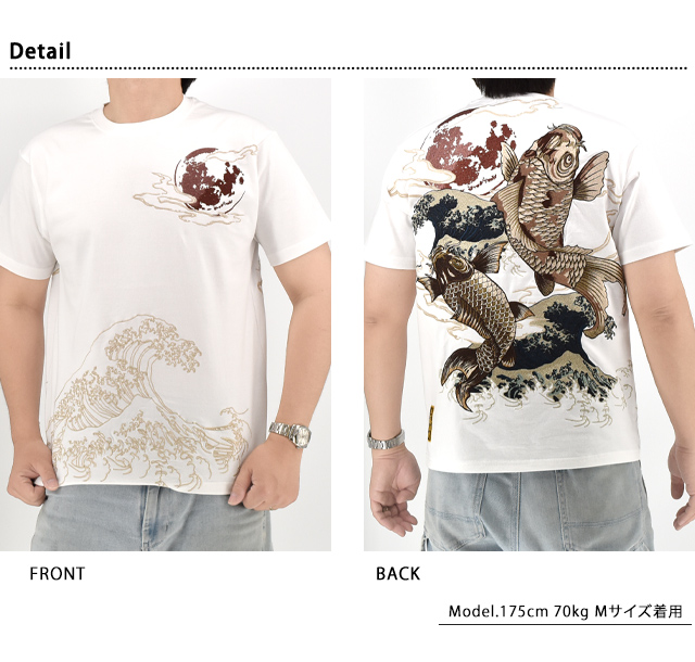 絡繰魂さんから「粋 昇り錦鯉半袖Tシャツ(252042)」のご紹介です。 重みすら感じるほどの刺繍量が魅力的な絡繰魂の粋シリーズから、最新作が登場しました! 今回モチーフの主役に採用されたのは、清涼感のある鯉。 背中には勢いよく跳ね上がる二匹の鯉をダイナミックに刺繍しました。 裾にはブランドロゴを印風に刺繍しています。 バックにしっかり柄を入れている分、フロントはシンプルに仕上げ、メリハリをつけました。 ボディーには、綿100%の刺繍に負けないコシのあるTシャツ生地を採用。 | |||||||||||||||||||||||||
