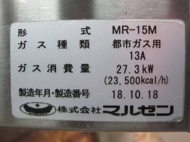 2018年製 保証付【マルゼン】【業務用】【中古】 ゆで麺機 MR-15M* 都市ガス W650xD750xH720mm