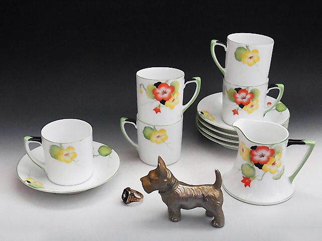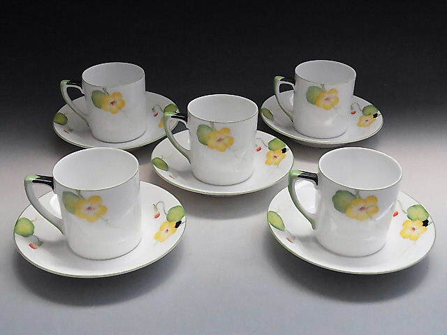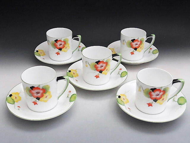 アールデコフラワー・デミタス C&S5客 ◆ オールドノリタケ