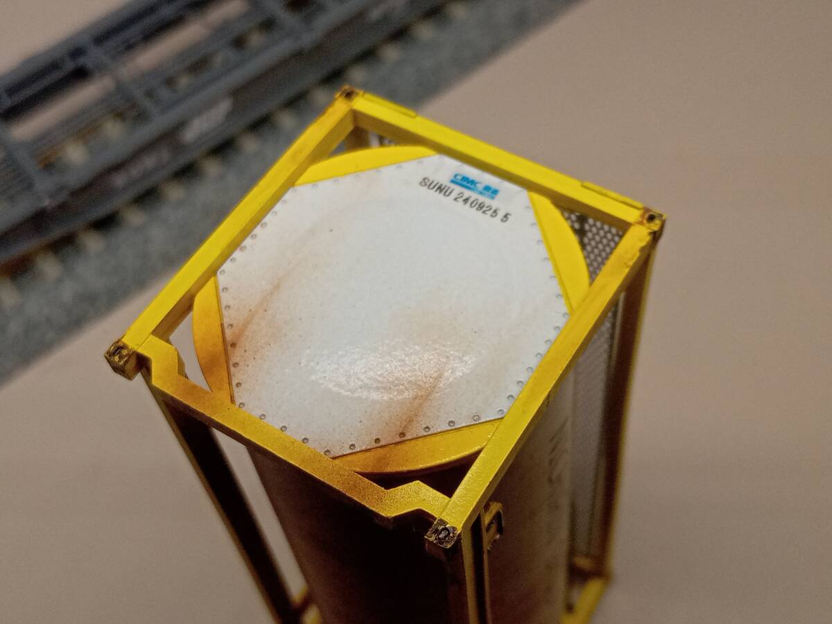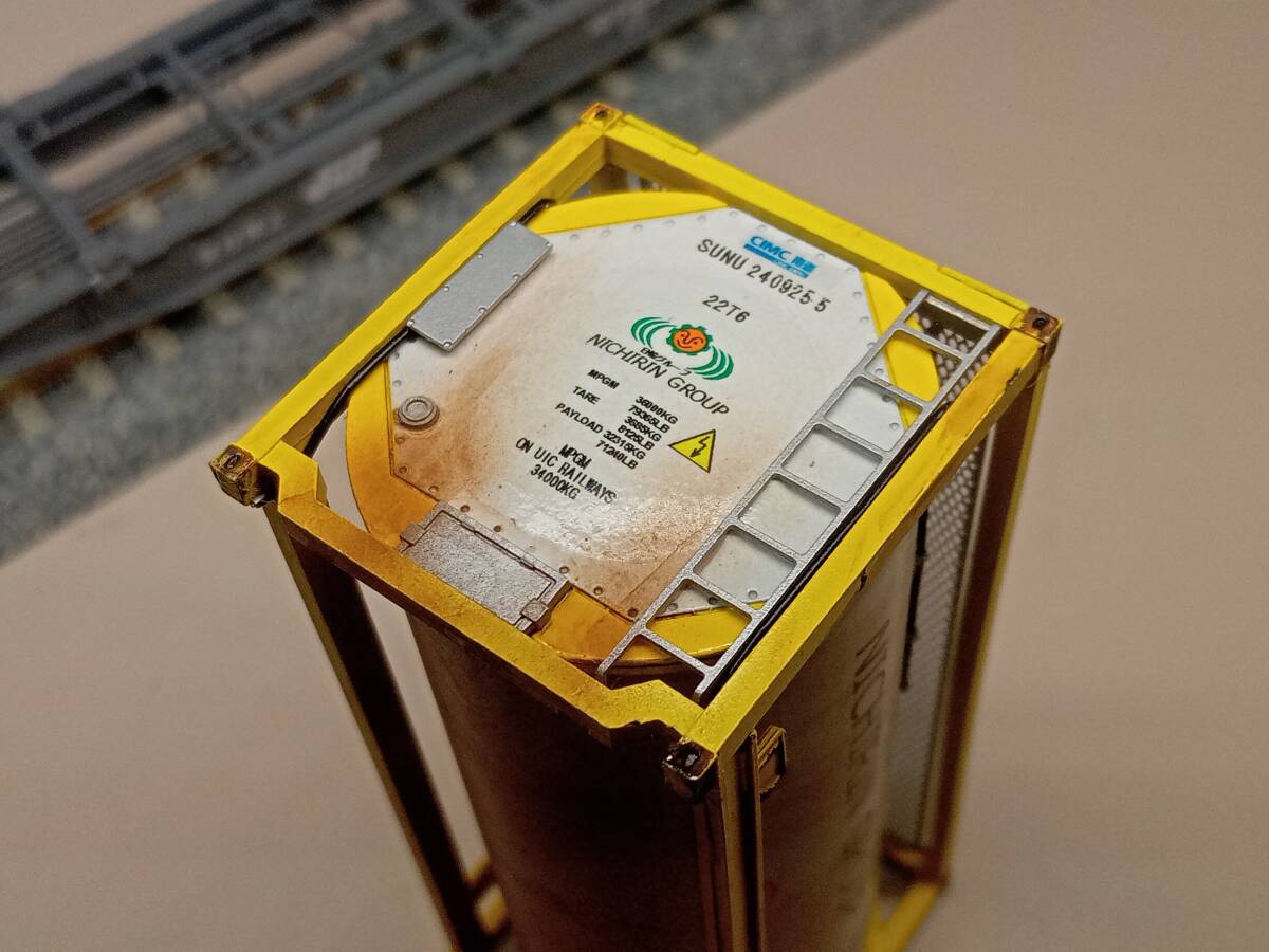 モリタのHOゲージコンテナキット組立て品、22K2コンテナ(日輪・黄色) ウェザリングです。