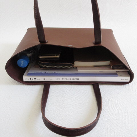 【L.C. 雅】★手縫い★ワイドなA4対応サイズ♪《牛革》スムース・マットブラウン・トートバック・0410