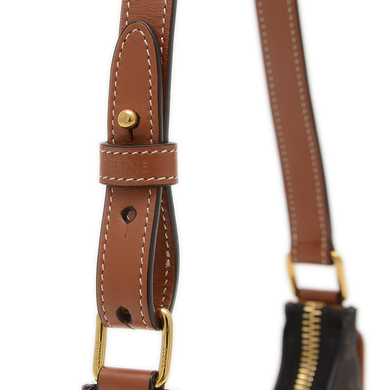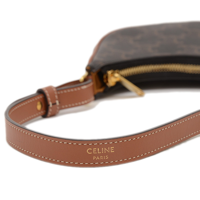 | 商品特徴 | セリーヌの象徴的なトリオンフキャンバスとカーフスキンを組み合わせた、洗練されたデザインのミニバッグです。三日月型のシルエットとゴールド仕上げの金具が特徴 |