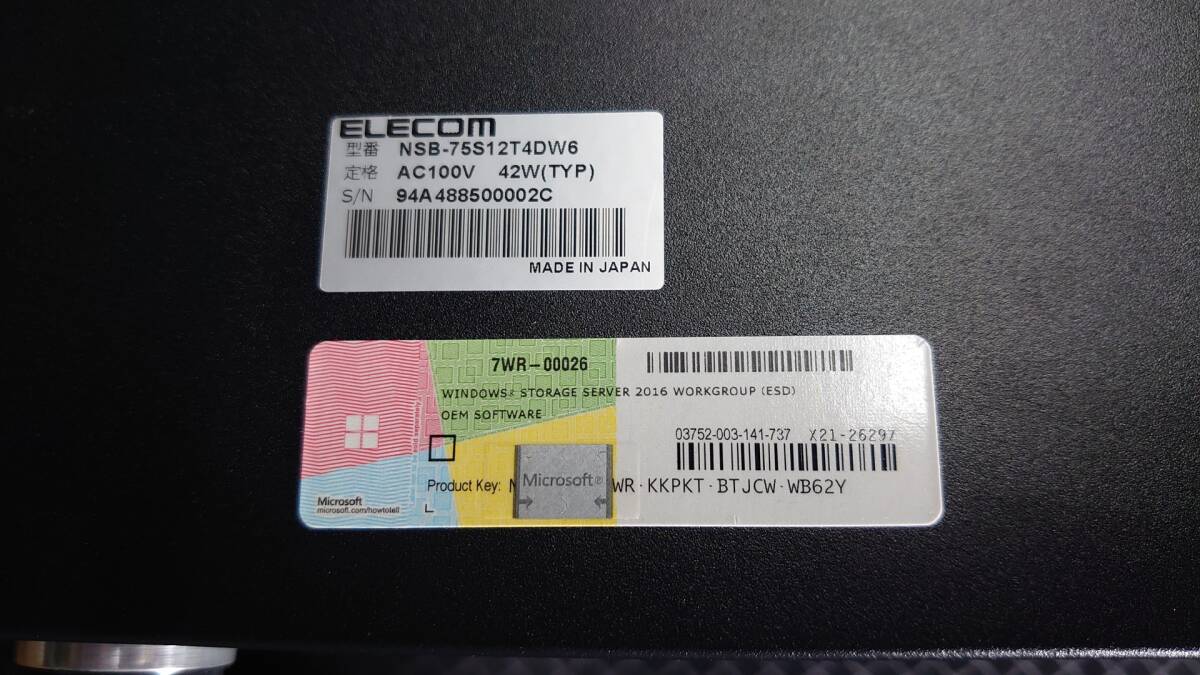 美品 ELECOM NSB-75S12T4DW6 4ベイボックス型 NASユニット Windows Storage Server 2016