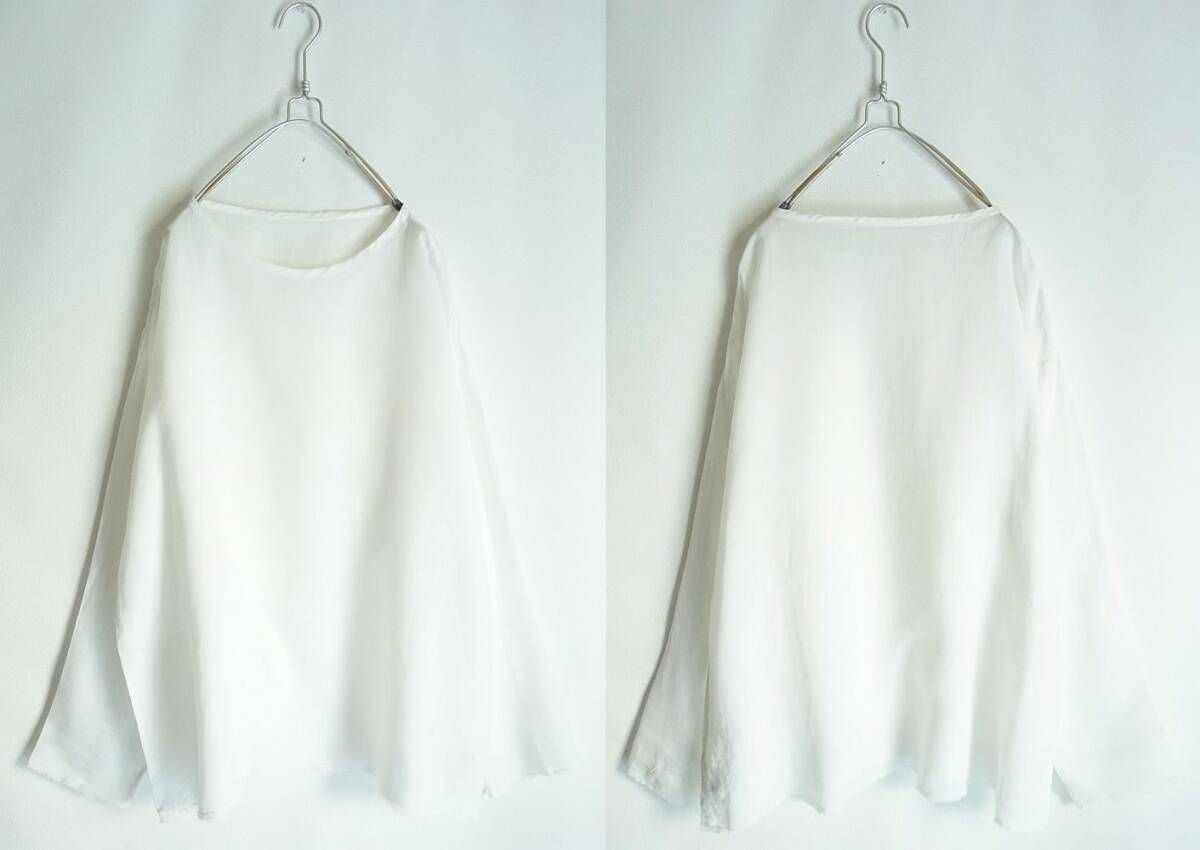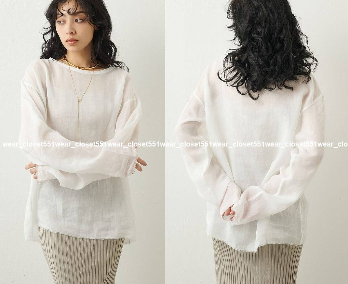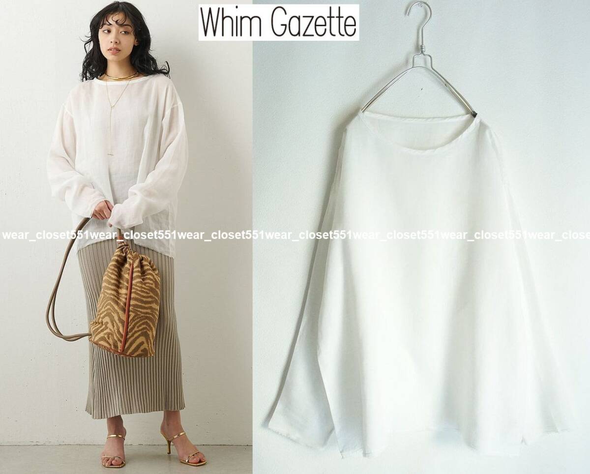 Whim Gazetteのラミープルオーバー。2023S/Sの定価18150円。夏の定番素材、ラミーを使用したボートネックプルオーバー。あえてくたっとした加工感を出すことでカジュアルな風合いに仕上げ、カットソーのように気軽に楽しめます。さりげないシアー感と程よい光沢感が上品さと女性らしさ印象をプラス。ゆったりとしたサイズ感で体のラインを拾いにくく安心して着用出来るのもポイント。シワを気にせずにお洗濯時も乾きやすく、着るほどに風合いが増し経年変化を楽しめるのも◎袖口と裾はカットオフ加工されています。レイヤードスタイルにも重宝しこれからのシーズンはもちろん、秋口までロングシーズン楽しめるアイテム。