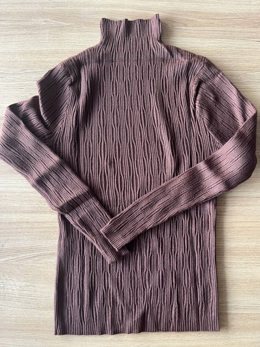 ハイネックインナートップスのシルエットが首もとを主張すぎず、すっきり着れて顔周りを小顔に見せてくれます。ボディにやさしくフィットし、メリハリのある女性らしい着こなしになります。