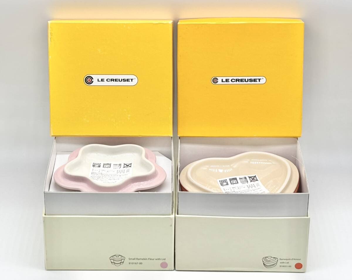 【未使用品】ル・クルーゼ LE CREUSET ラムカン ココット 2個セット ダムール フルール お花 ピンク ハート 赤 レッド