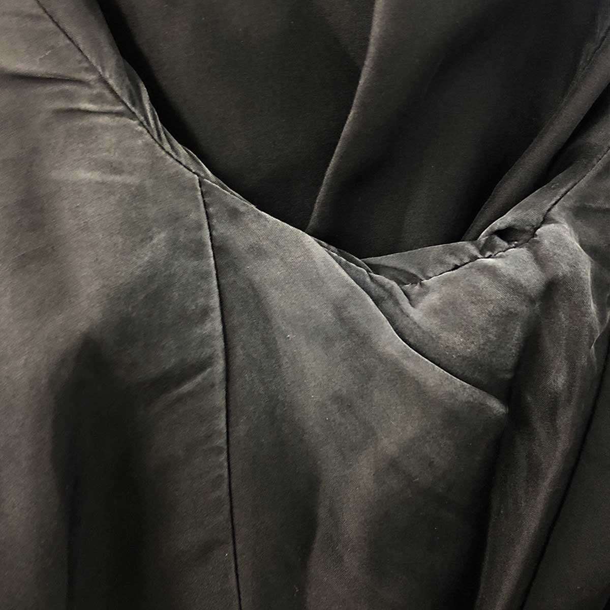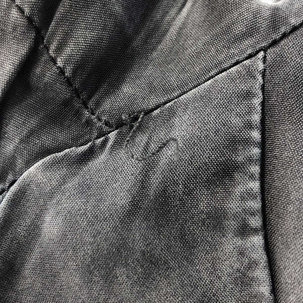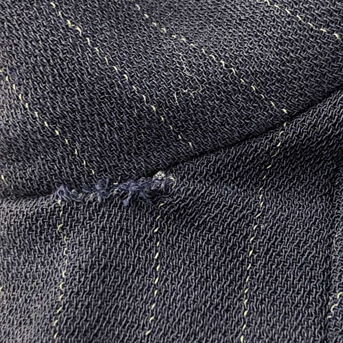 やや着用感、脇裏地に白く薄汚れ・脇裏地縫い目に一部ほつれ、左脇に補修したような跡(9枚目)がございます。