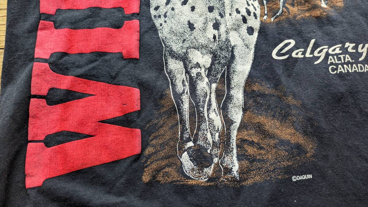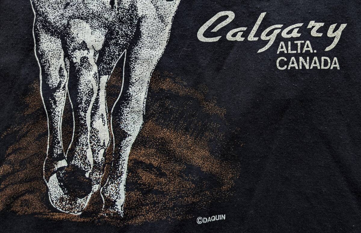 送料無料♪USA古着 アニマルTシャツ M相当 メンズ ブラック 黒 シングルステッチ丸胴 Calgary CANADA カルガリー カナダ 馬 80s90s vintage