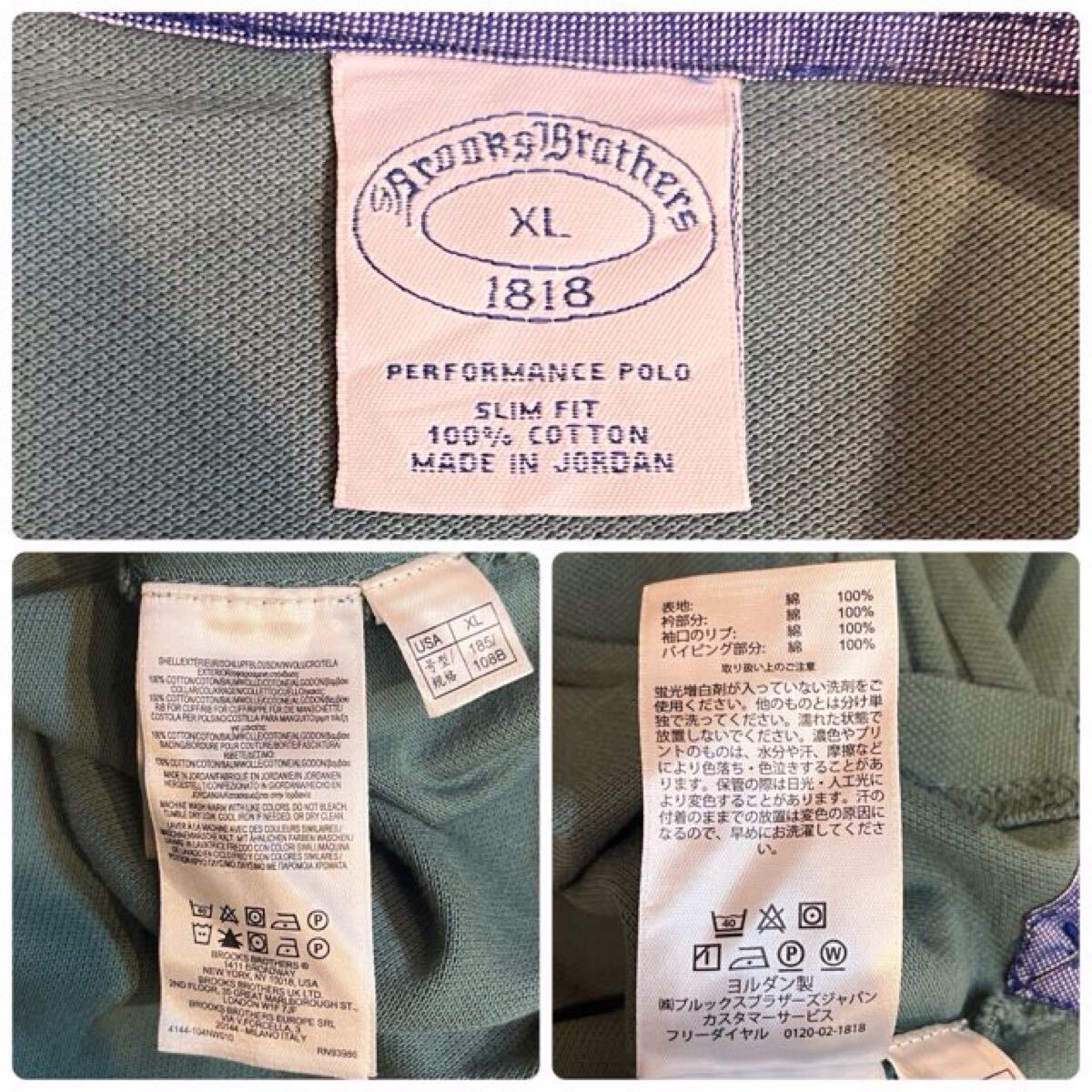 L464 メンズ ポロ シャツ BROOKS BROTHERS ブルックスブラザーズ 長袖 シンプル グリーン ロゴ ワンポイント アメカジ カジュアル 古着 大きいサイズ / XL レターパック発送