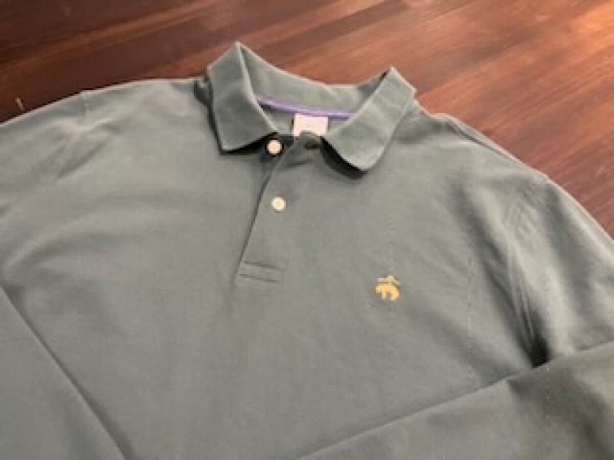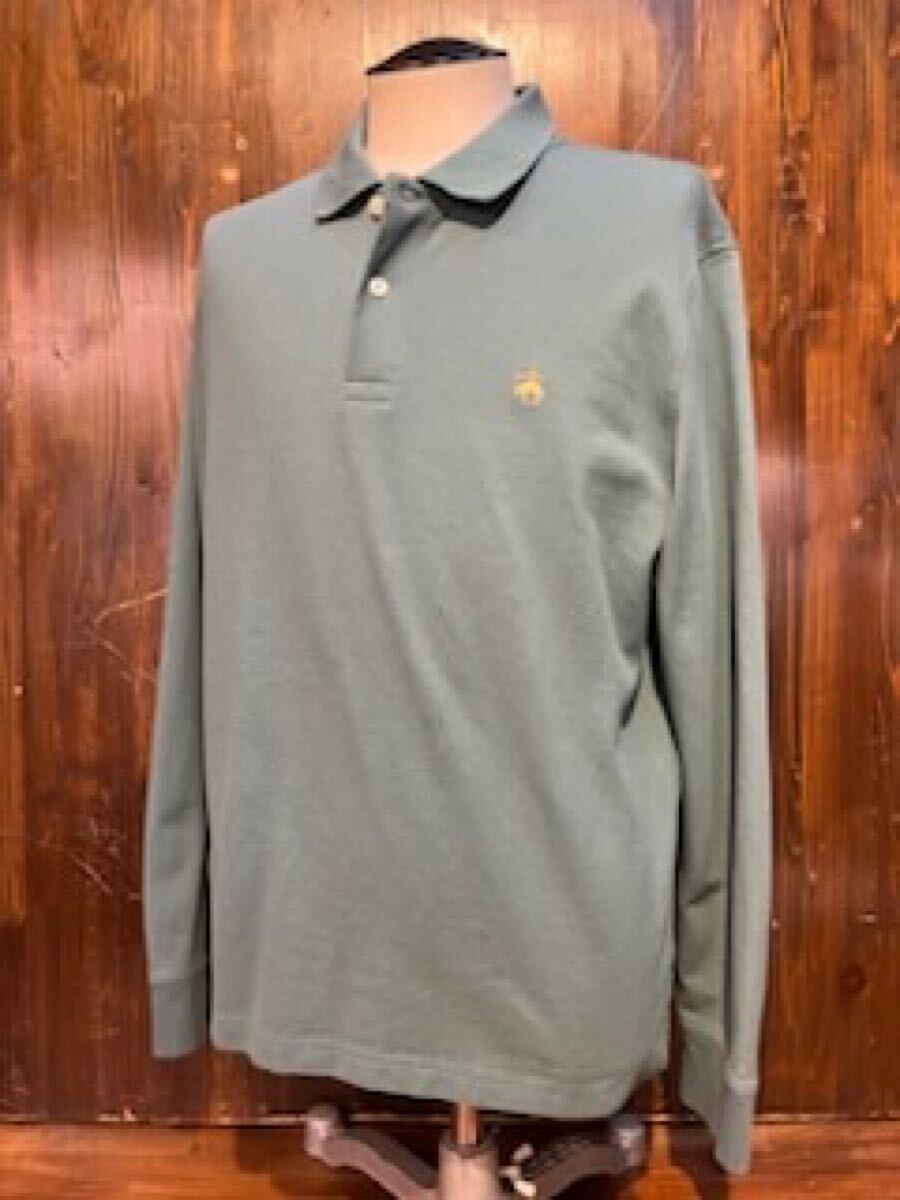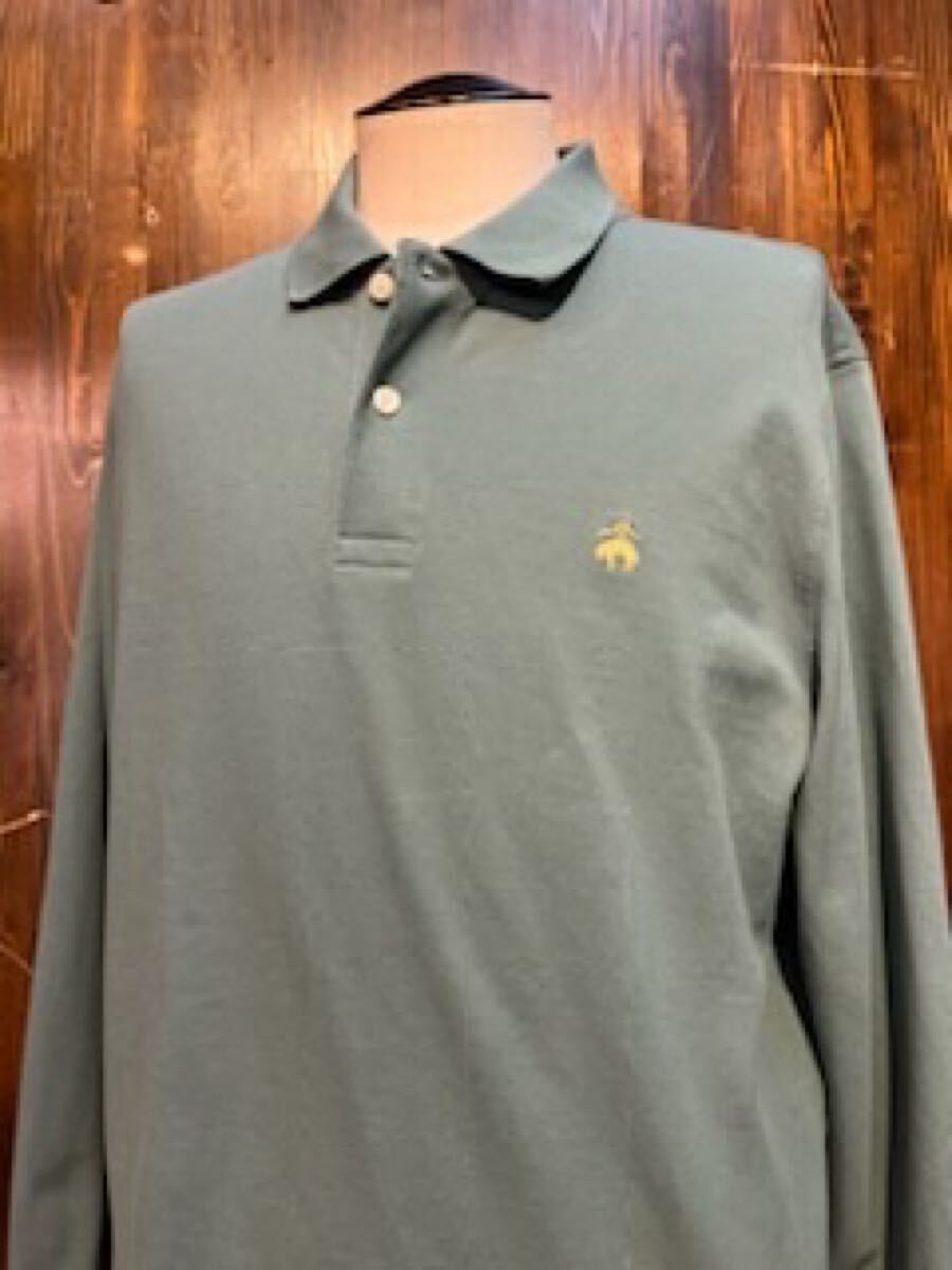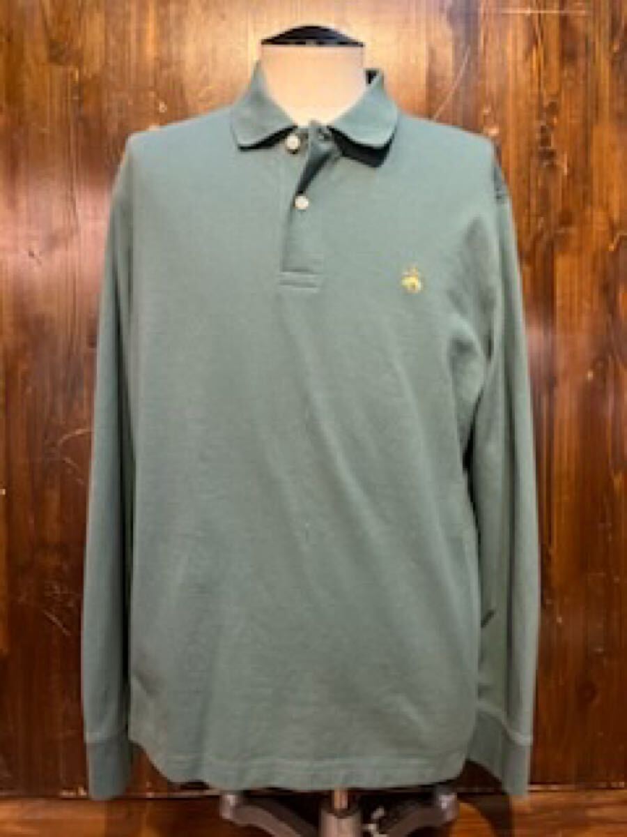 L464 メンズ ポロ シャツ BROOKS BROTHERS ブルックスブラザーズ 長袖 シンプル グリーン ロゴ アメカジ 古着 XL レターパック発送
