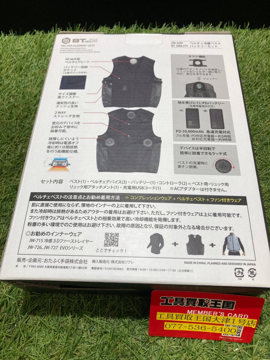 F9【未使用品】おたふく手袋 冷暖ペルチェベスト[バッテリー付き 付属アタッチメント付き]JW-699 ブラック フリーサイズ IT5T642M387O