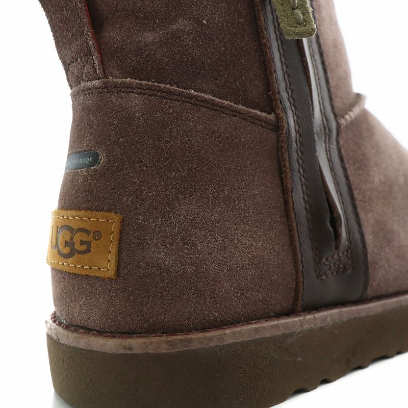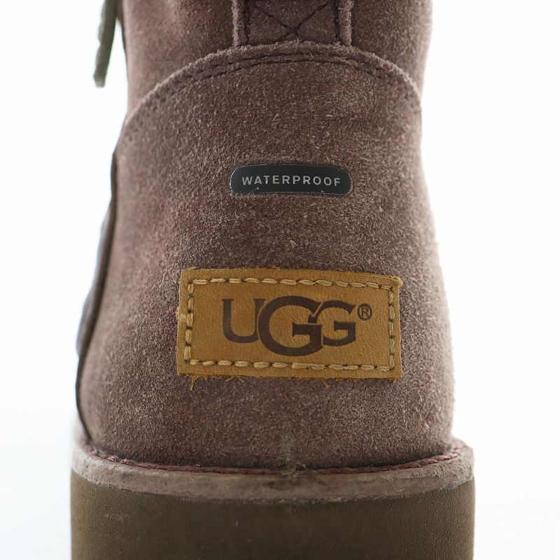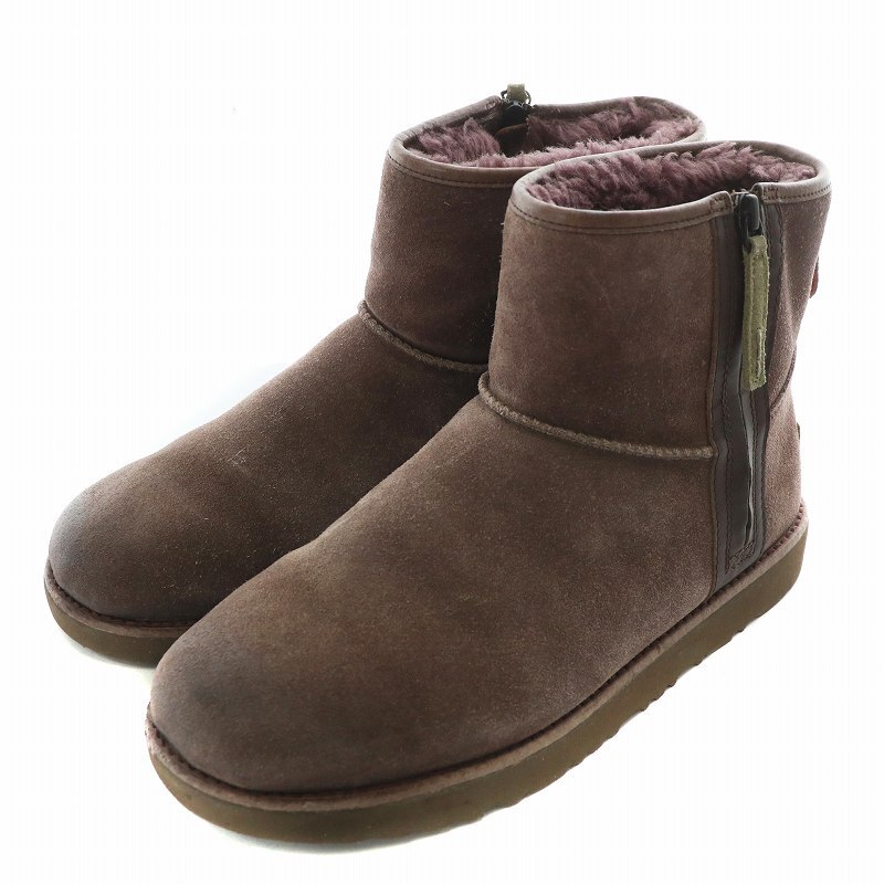 アグ UGG Classic Mini Zip Waterproof ムートンブーツ スエード ボア 防水 ショート サイドジップ ロゴ US10 28cm 紫 1018453