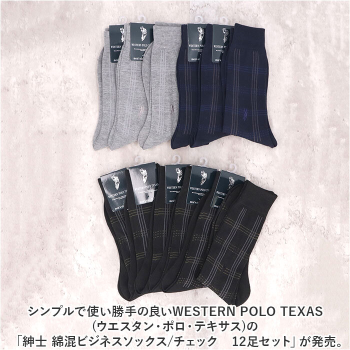 | 商品説明 | ・・シンプルで使い勝手の良いWESTERN POLO TEXAS(ウエスタン・ポロ・テキサス)の「紳士 綿混ビジネスソックス/チェック 12足セット」が発売。 ・【綿混素材で快適】 ・綿混素材で通気性が良く、オールシーズン快適な履き心地。 ・【シンプルでおしゃれなデザイン】 ・靴下と同色のワンポイント刺繍がアクセント。さりげないチェック柄でスーツにも合わせやすい。 ・【幅広いシーンで活躍】 ・ビジネスはもちろんスクールやカジュアルにも使え、幅広いシーンで活躍! |