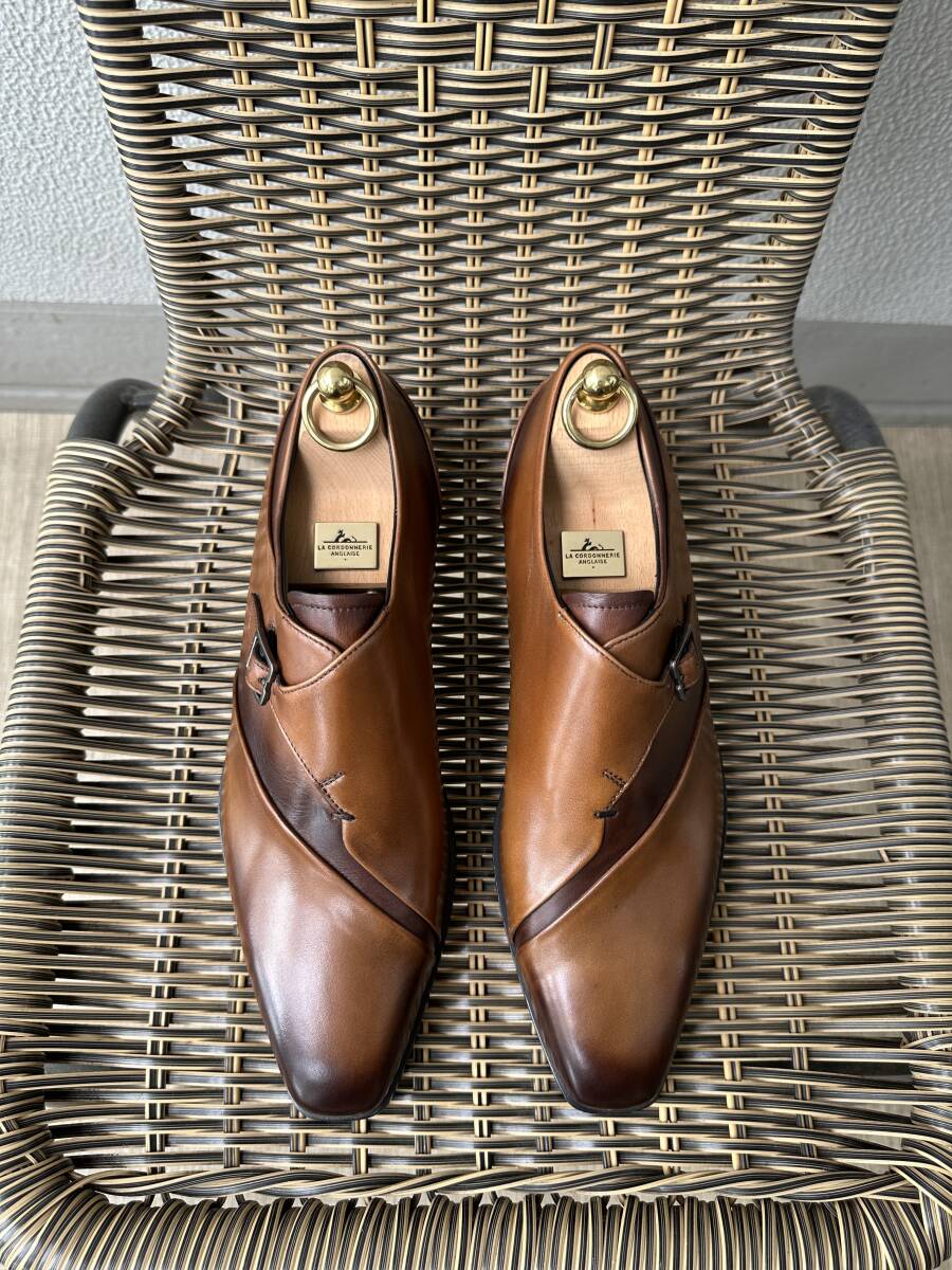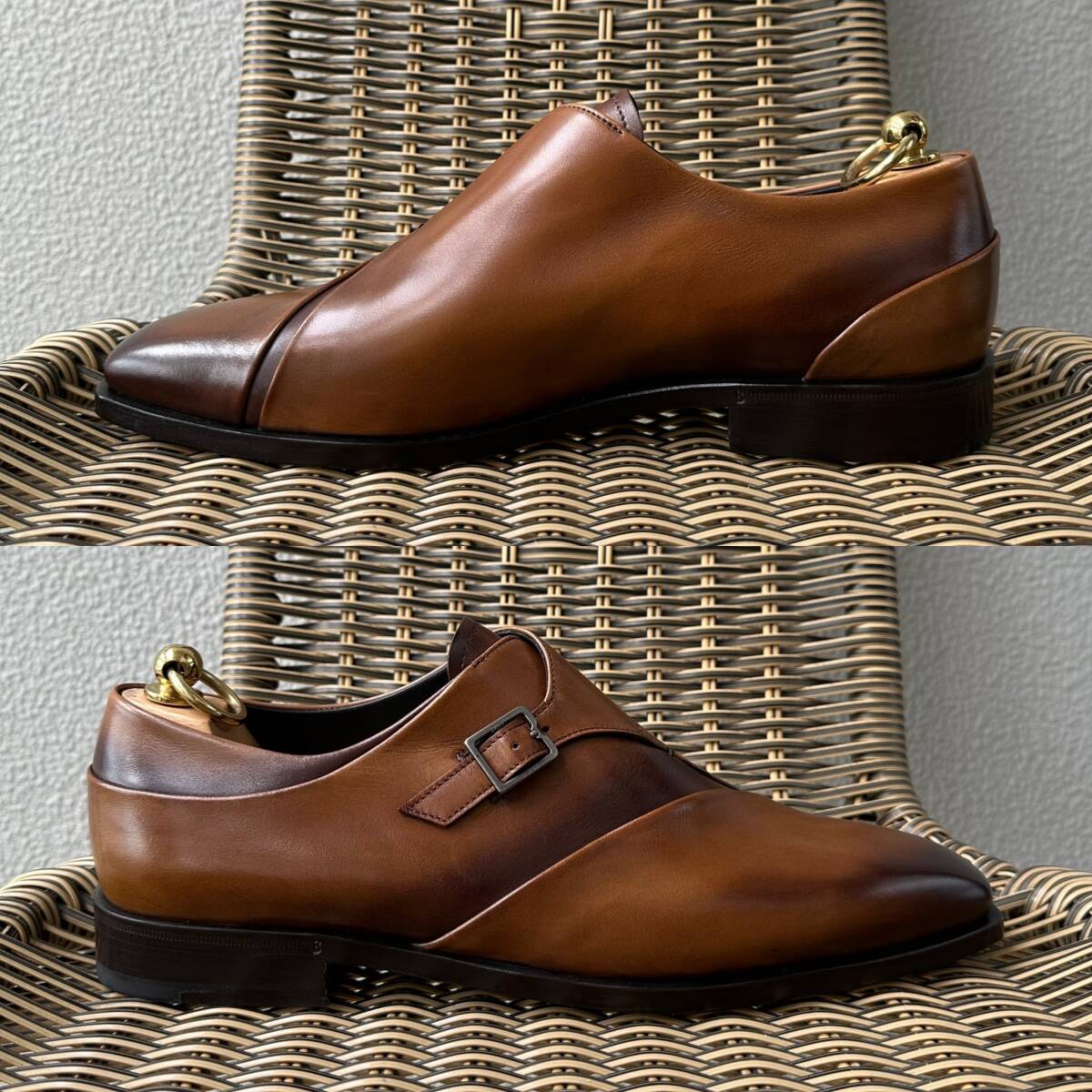 ベルルッティより、2022年春夏限定モデルのドラペ パティーヌレザー モンクストラップシューズになります。