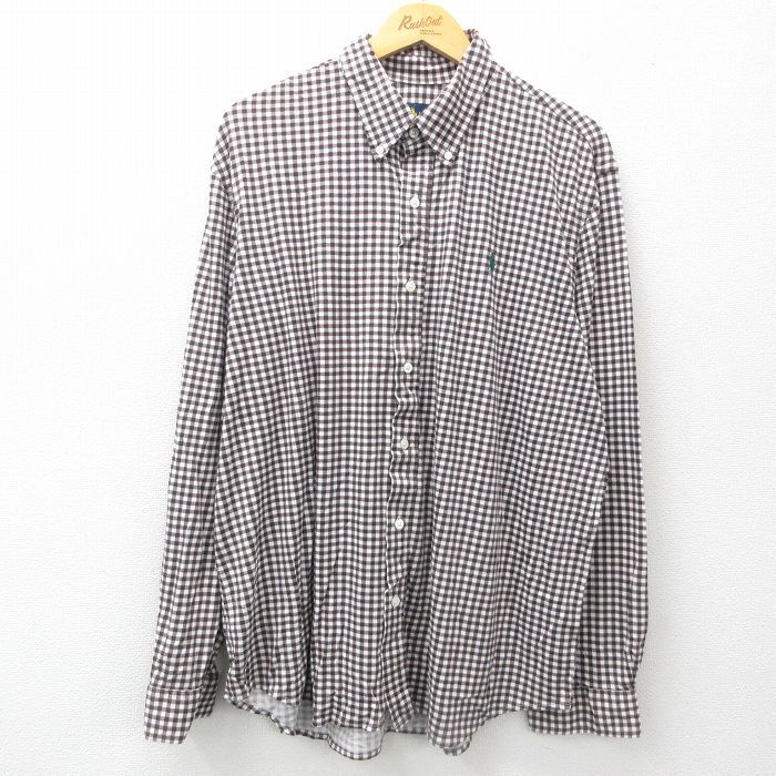 【商品名】 XL★古着 ラルフローレン 長袖 ブランド シャツ メンズ ワンポイントロゴ 大きいサイズ コットン ボタンダウン 茶他 チェック