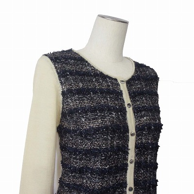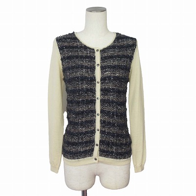 ロペ ROPE カーディガン ニット ツイード切替 M クリーム レディース