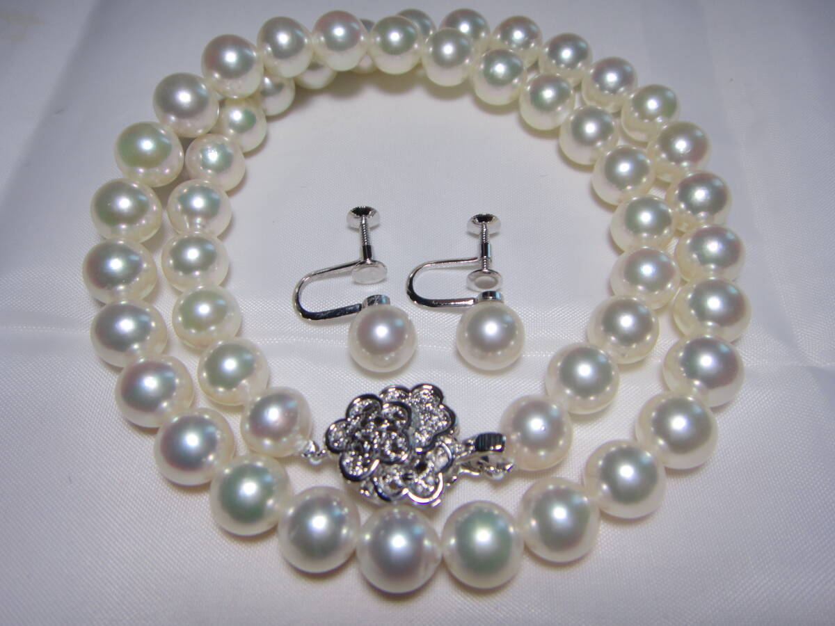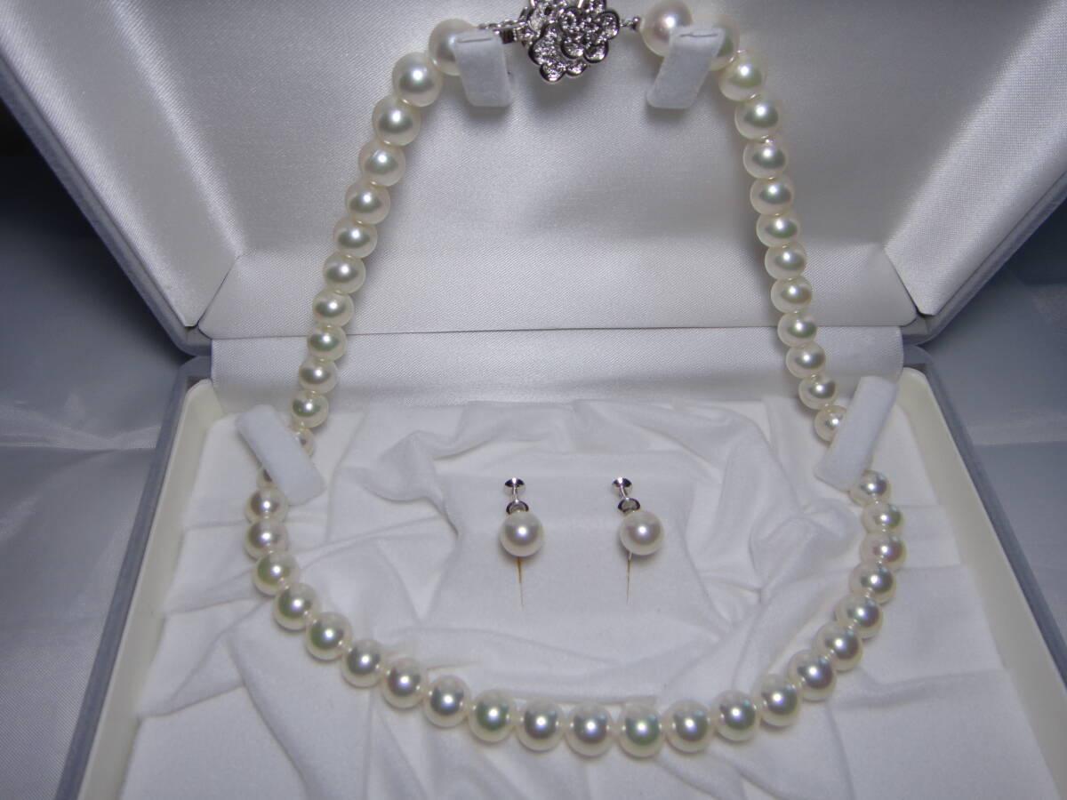 アコヤ真珠 本真珠 本パール ネックレス&イヤリング 艶照り強 大玉 約8~8.5㎜ ホワイト系 約42㎝ ケース付 ヴィンテージ D423