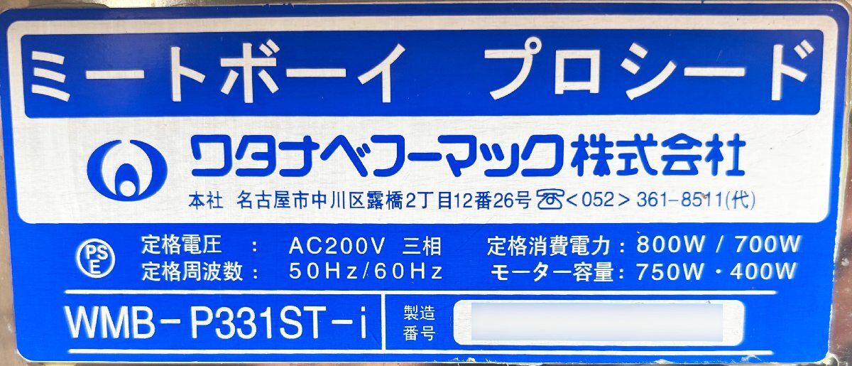 M◆ワタナベフーマック(WATANABE)/ミートスライサー/ミートボーイ プロシード WMB-P331ST-i/インバーター制御モデル/2019年製/動作品 |